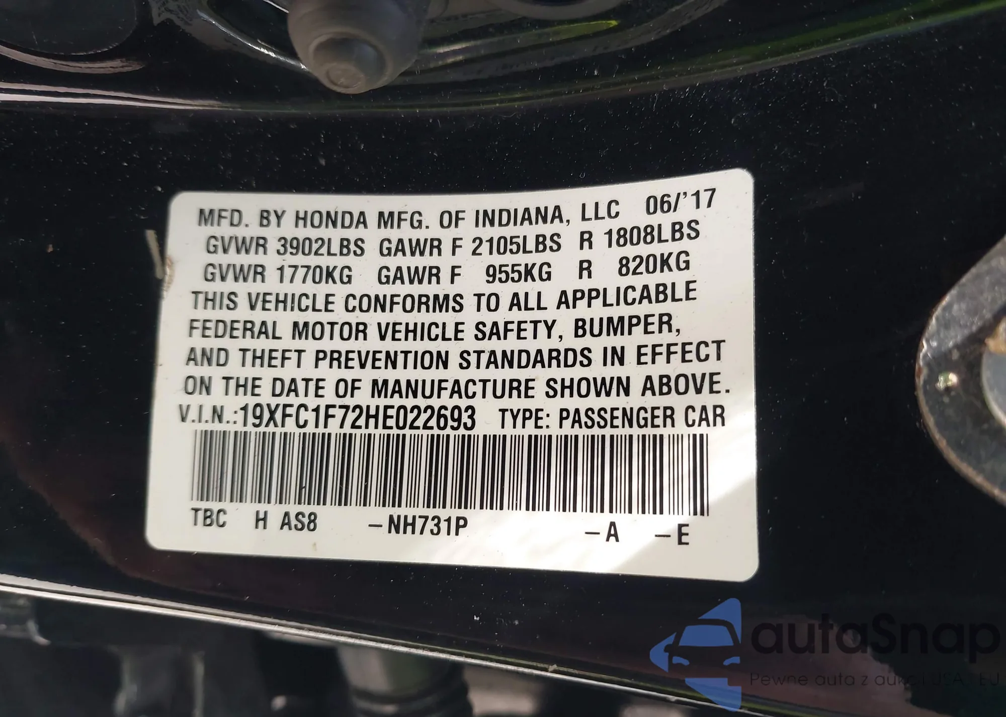• VIN 19XFC1F72HE022693