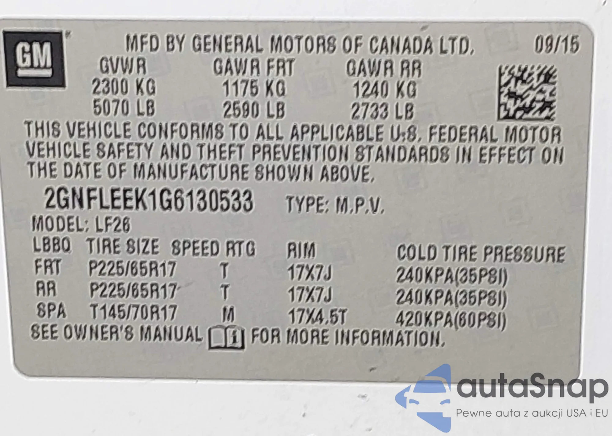 • VIN 2GNFLEEK1G6130533