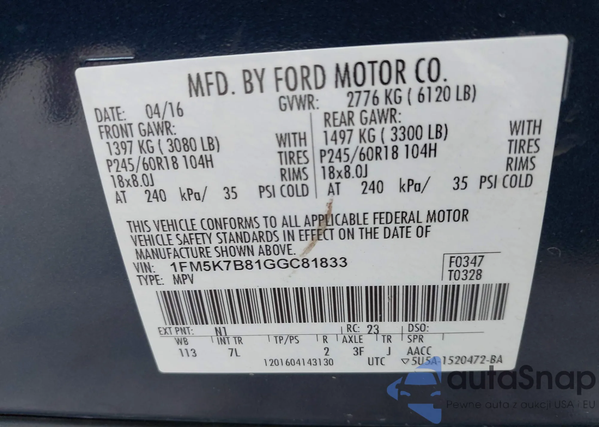 • VIN 1FM5K7B81GGC81833