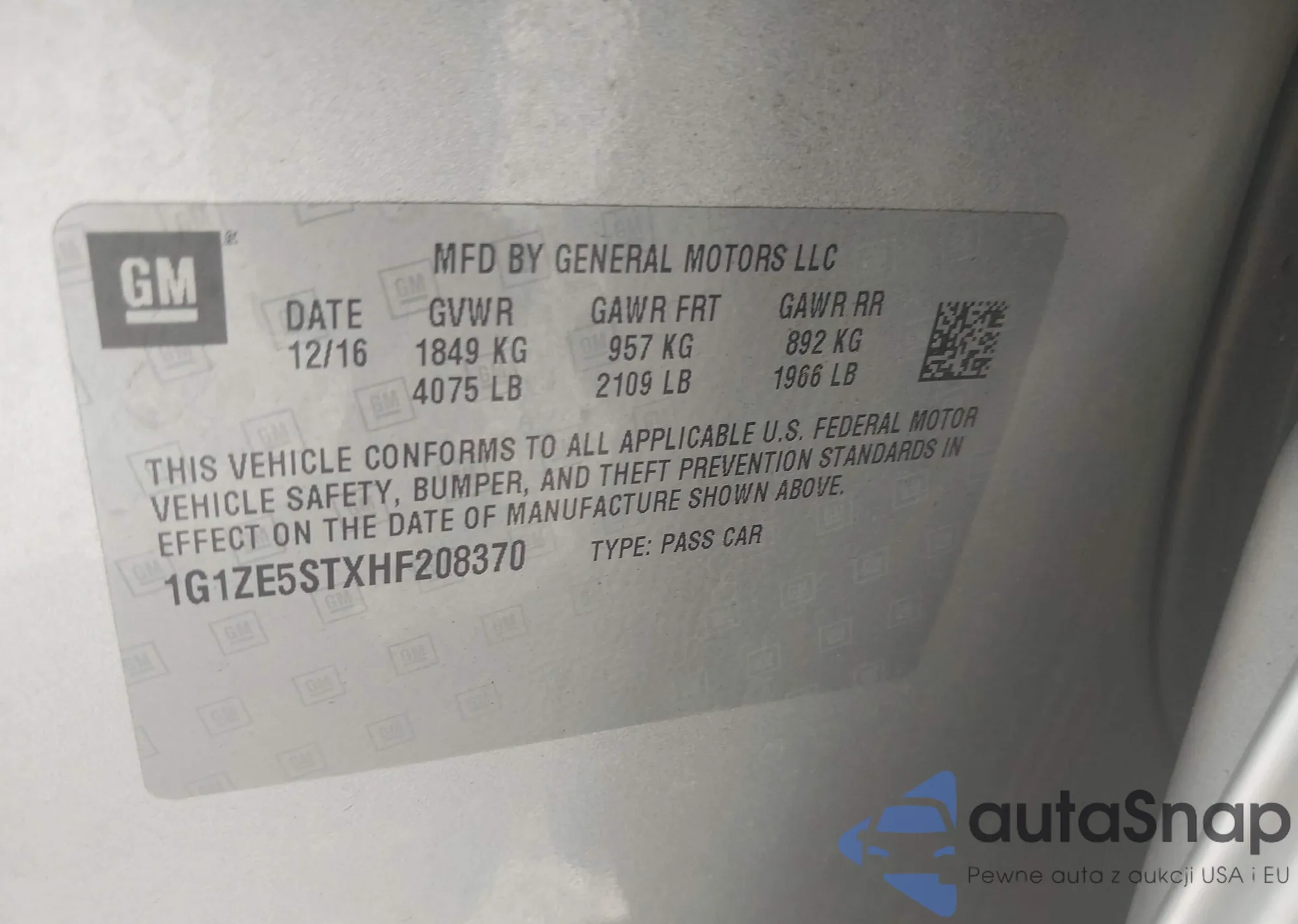 • VIN 1G1ZE5STXHF208370