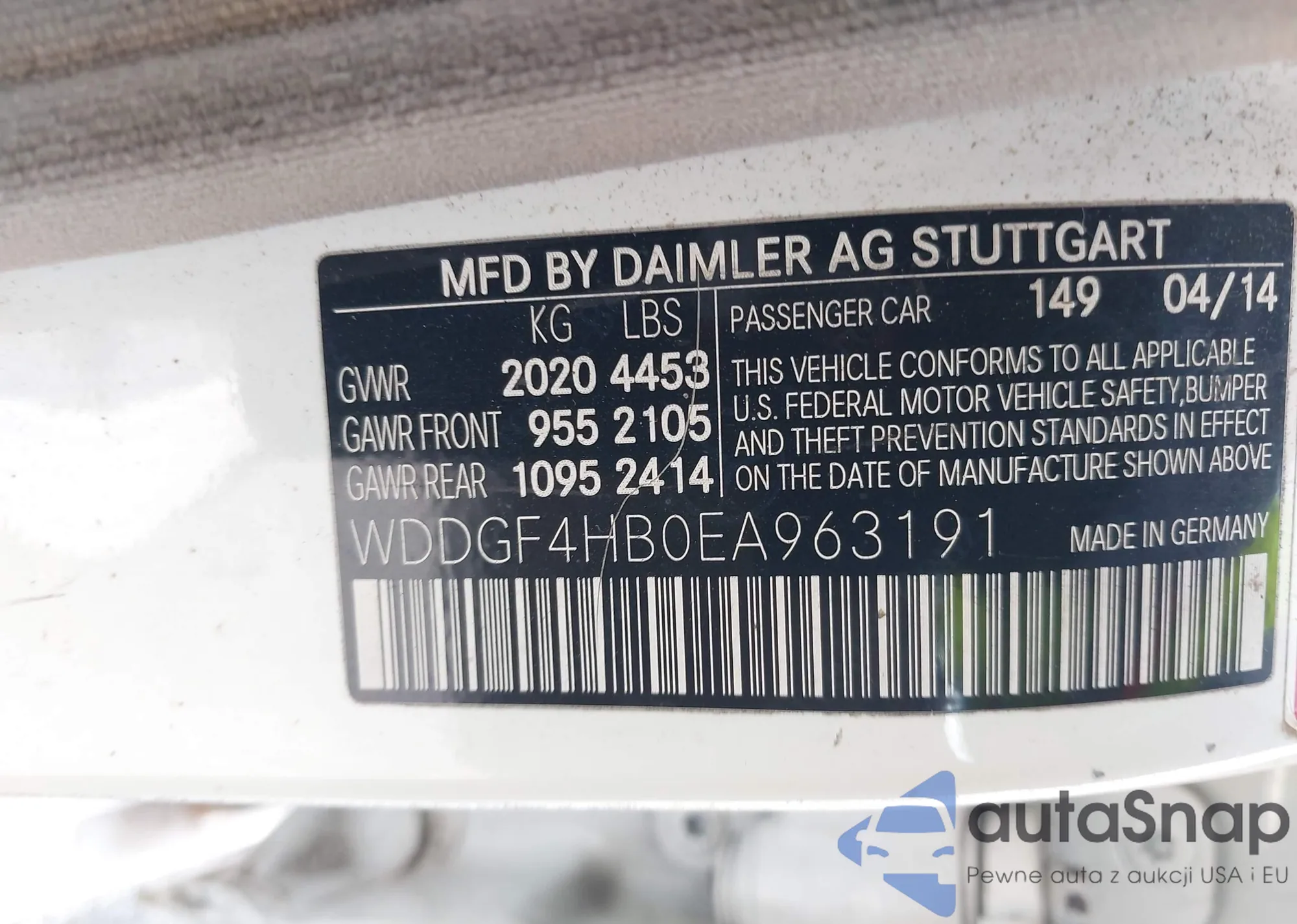 • VIN WDDGF4HB0EA963191
