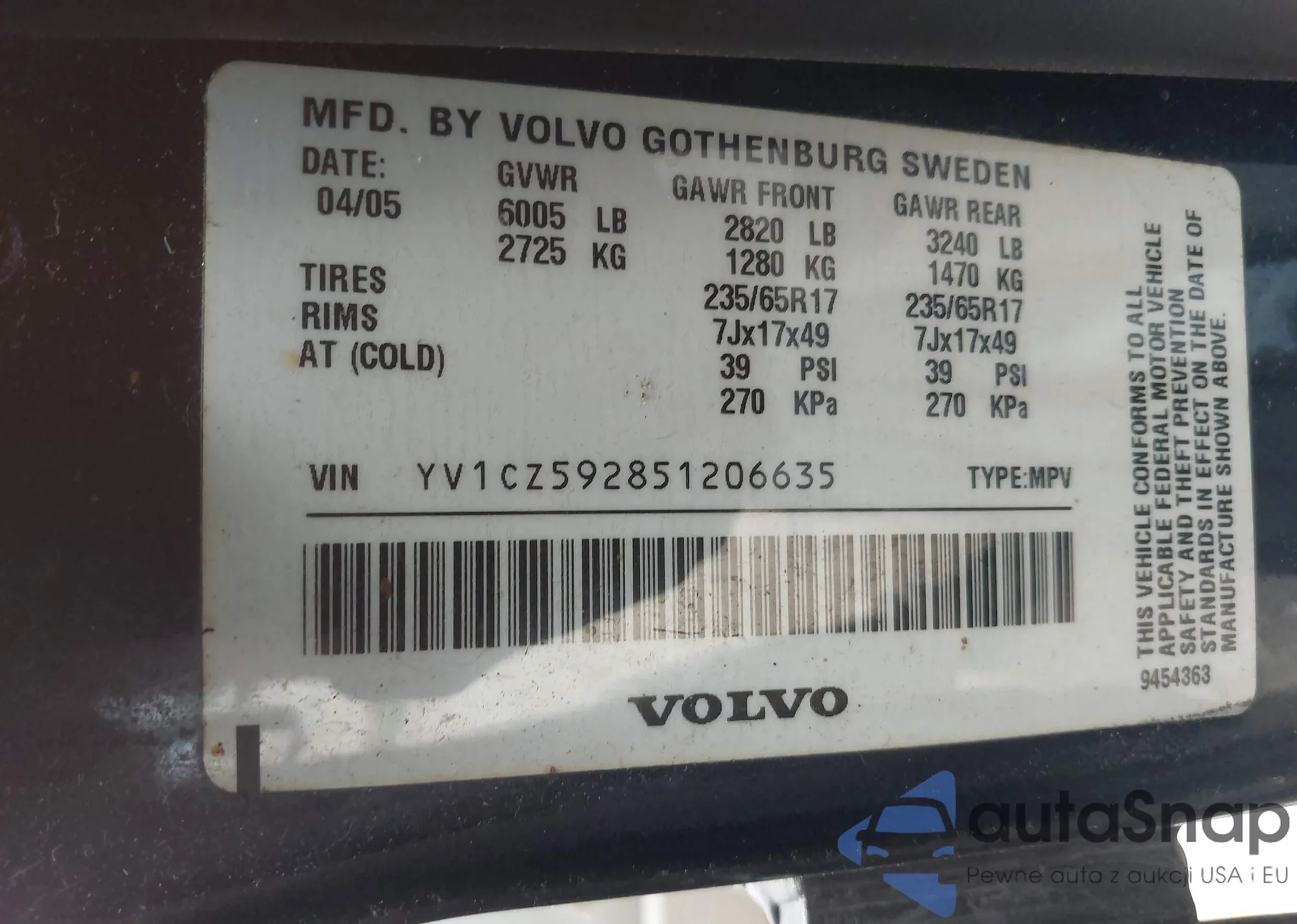 • VIN KL7CJLSB1MB329341