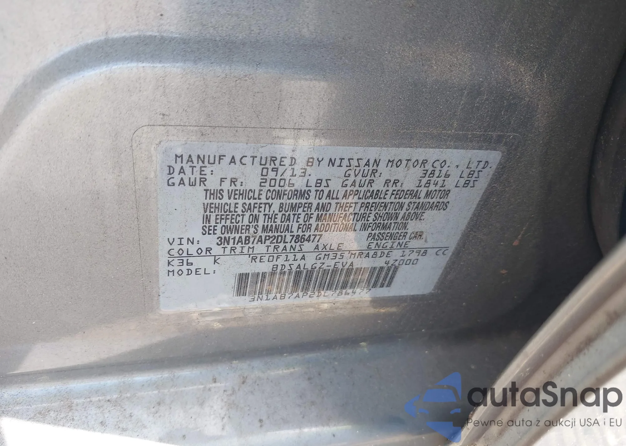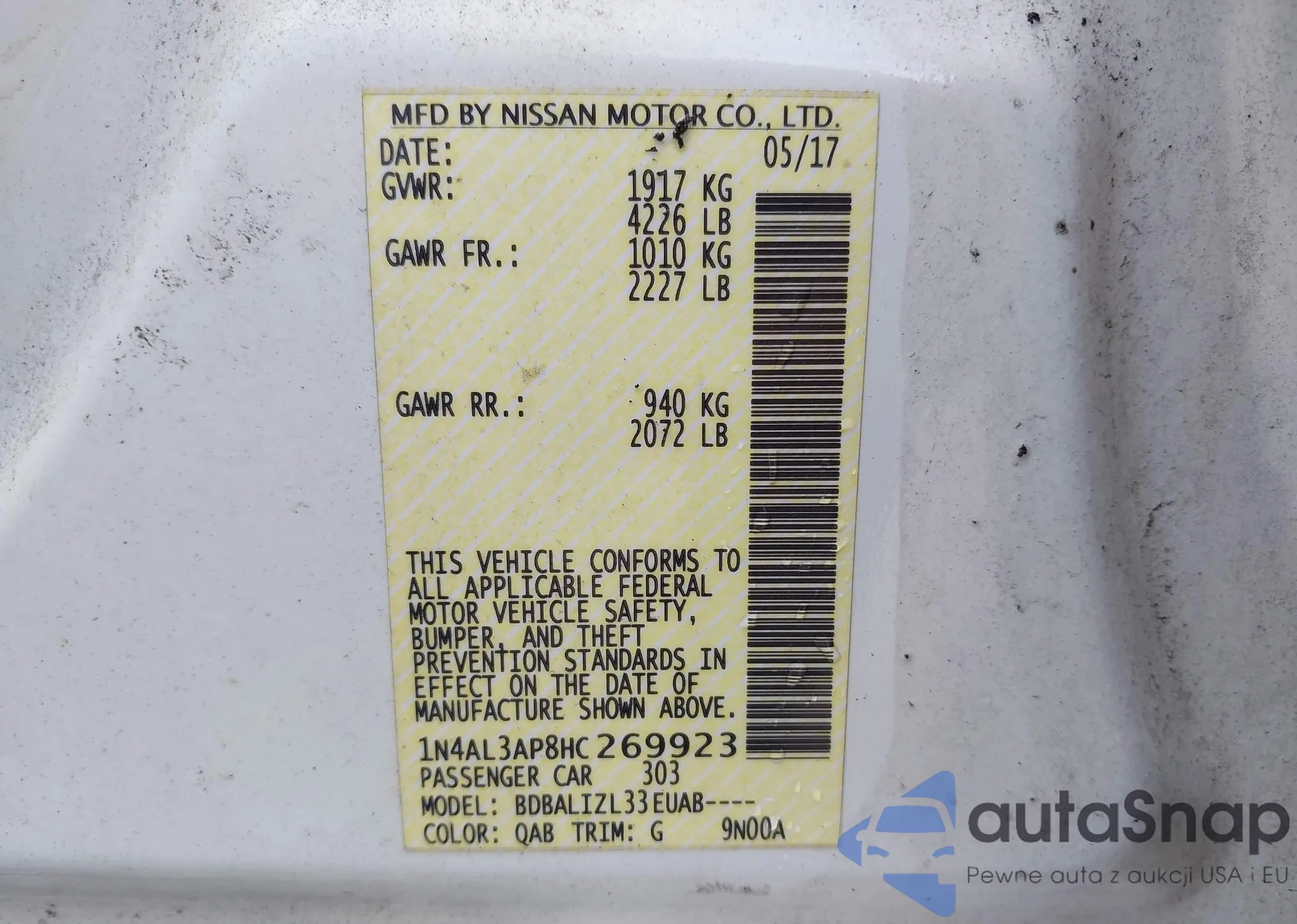 • VIN 1N4AL3AP8HC269923