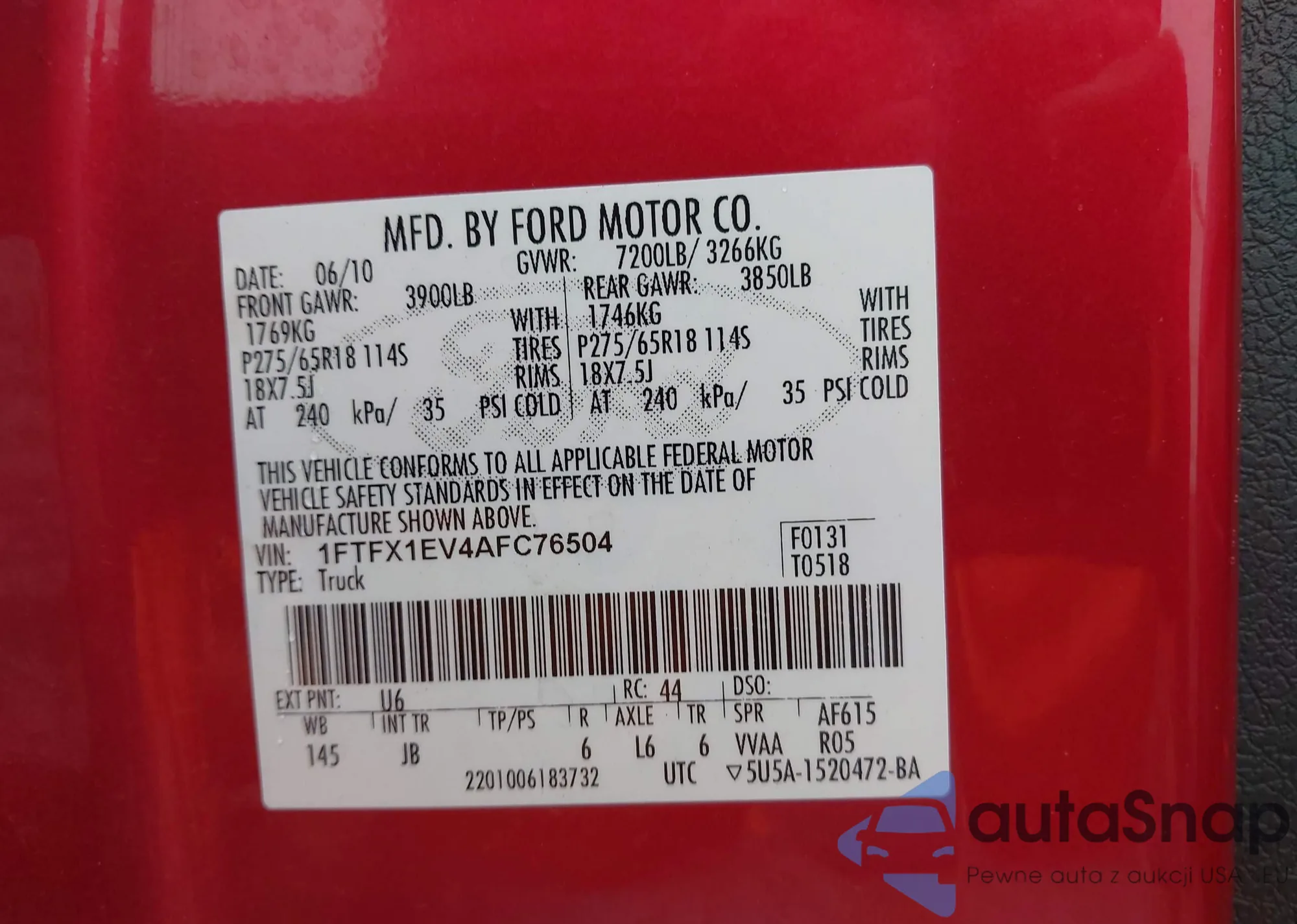 • VIN 1FTFX1EV4AFC76504