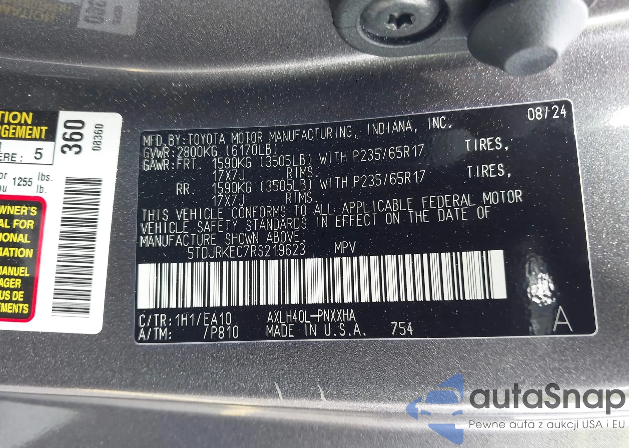 LOT: 42318924 VIN: 5TDJRKEC7RS219623