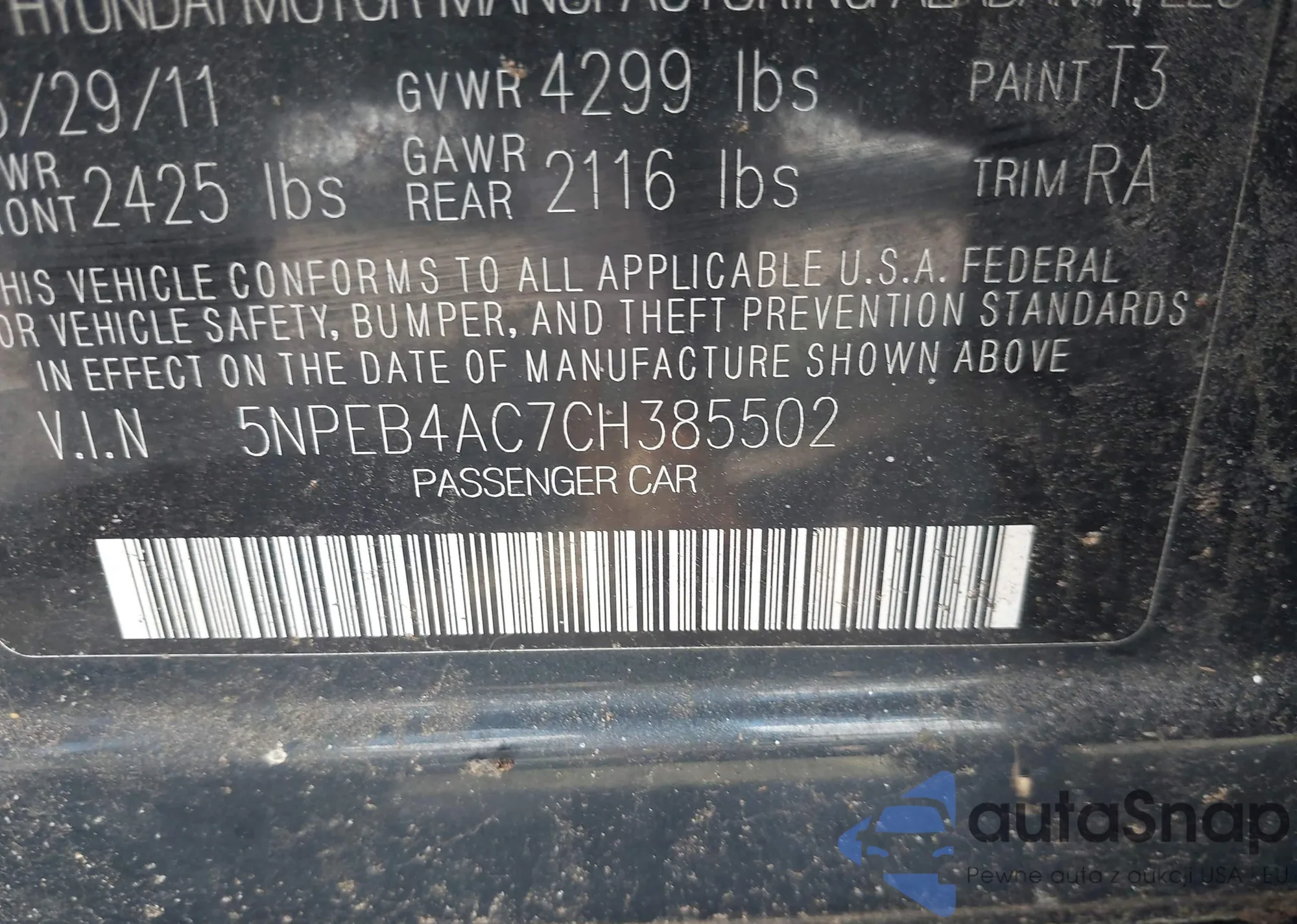 LOT: 42427607 VIN: KMHCM3AC9BU187600