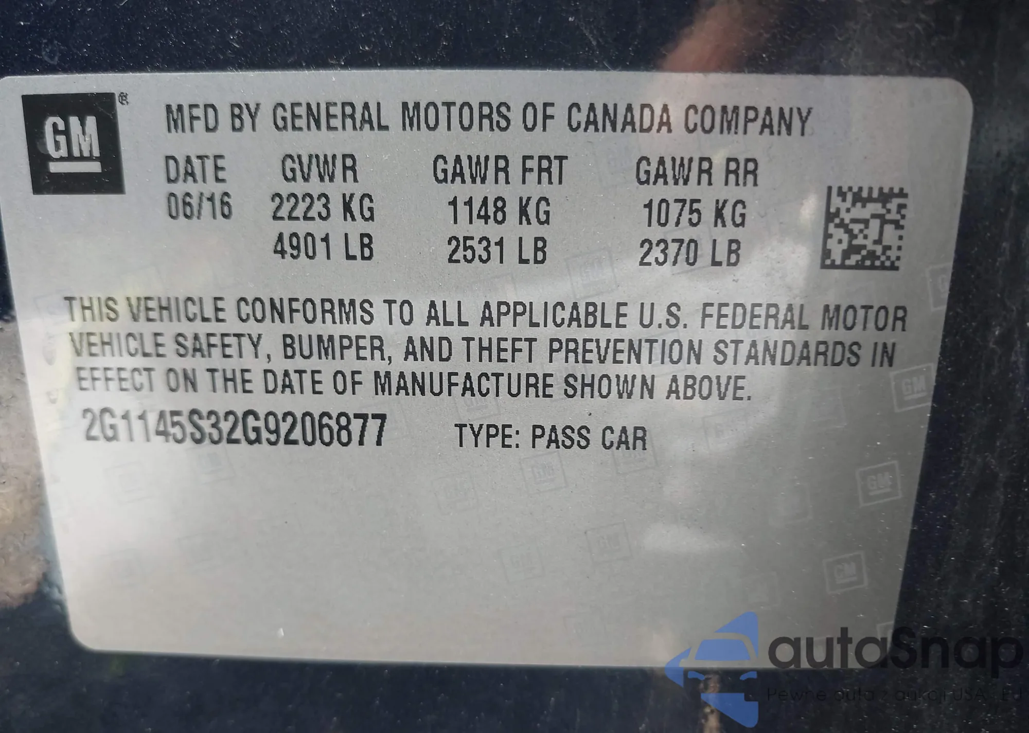 • VIN 2G1145S32G9206877