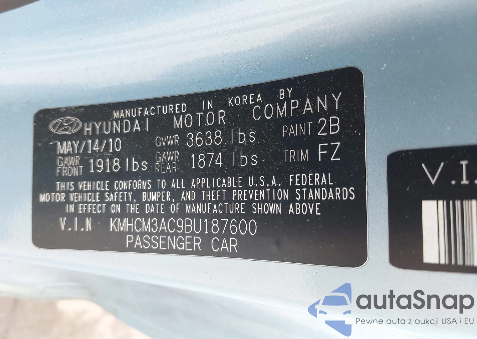 • VIN KMHCM3AC9BU187600