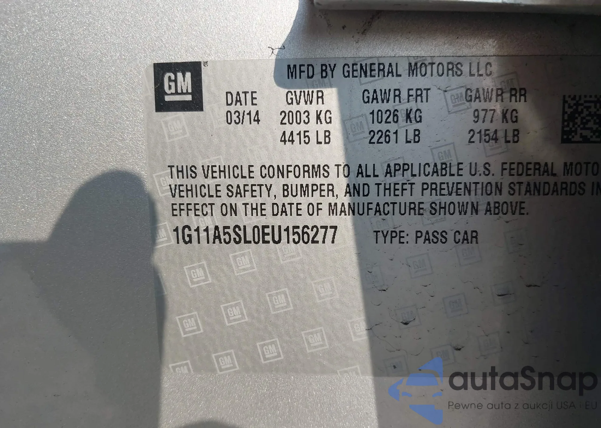 • VIN 1G11A5SL0EU156277