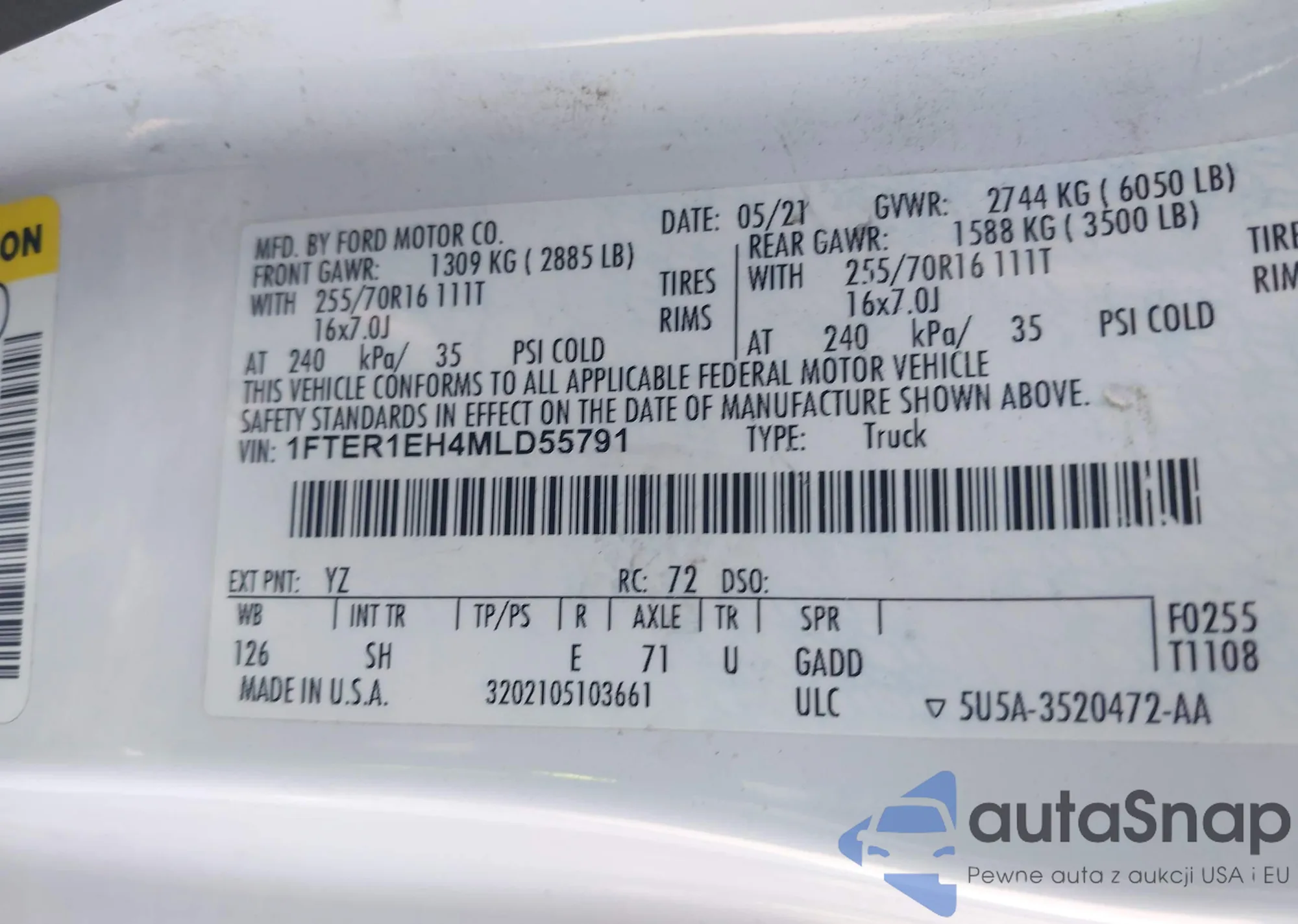 LOT: 42570150 VIN: 1FTER1EH4MLD55791
