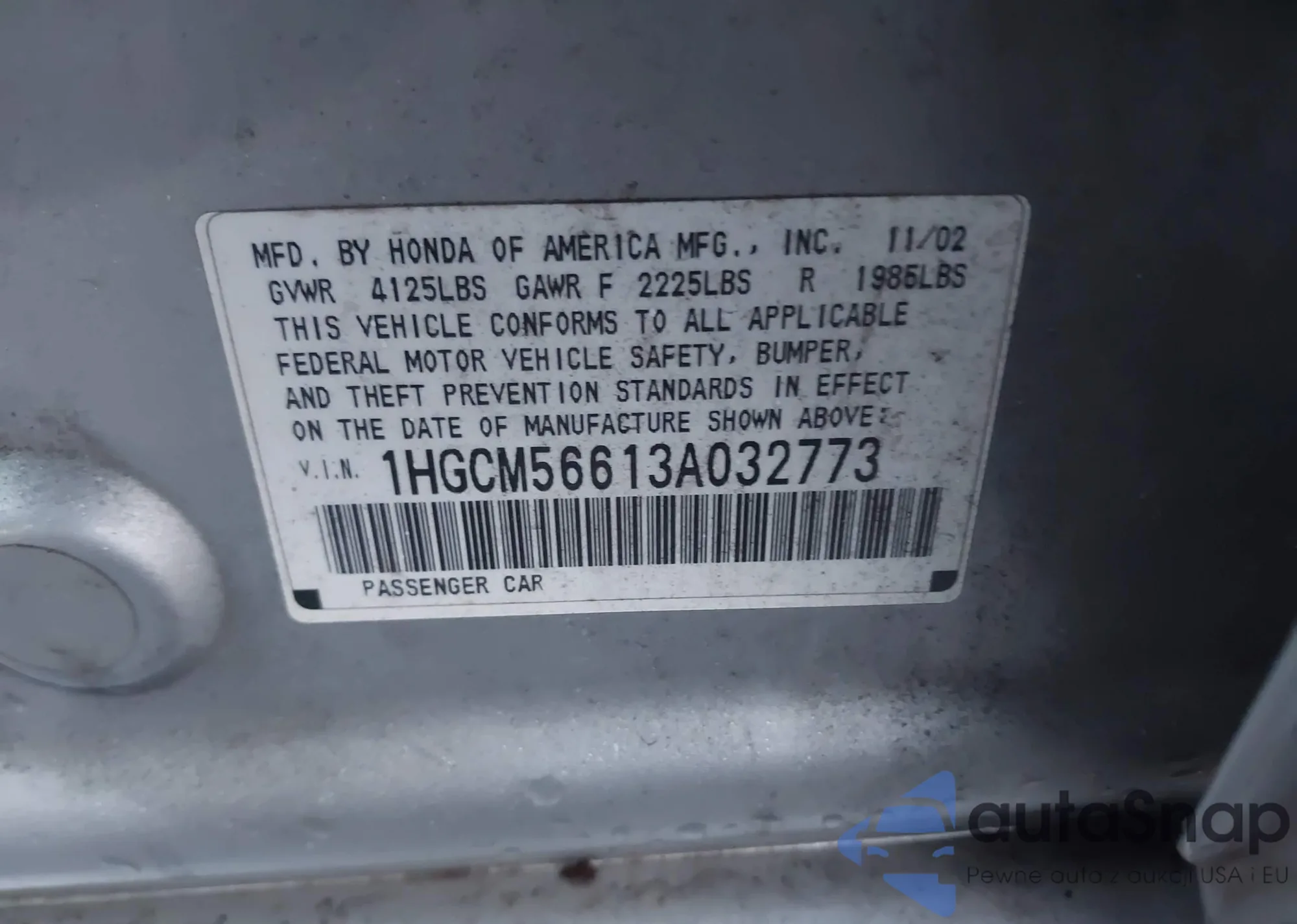 LOT: 40908956 VIN: 1HGCM56613A032773