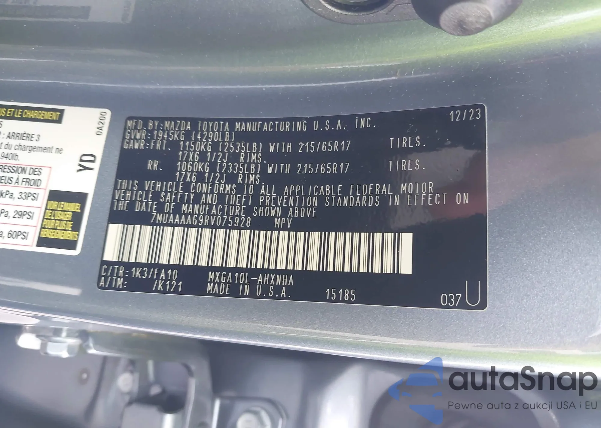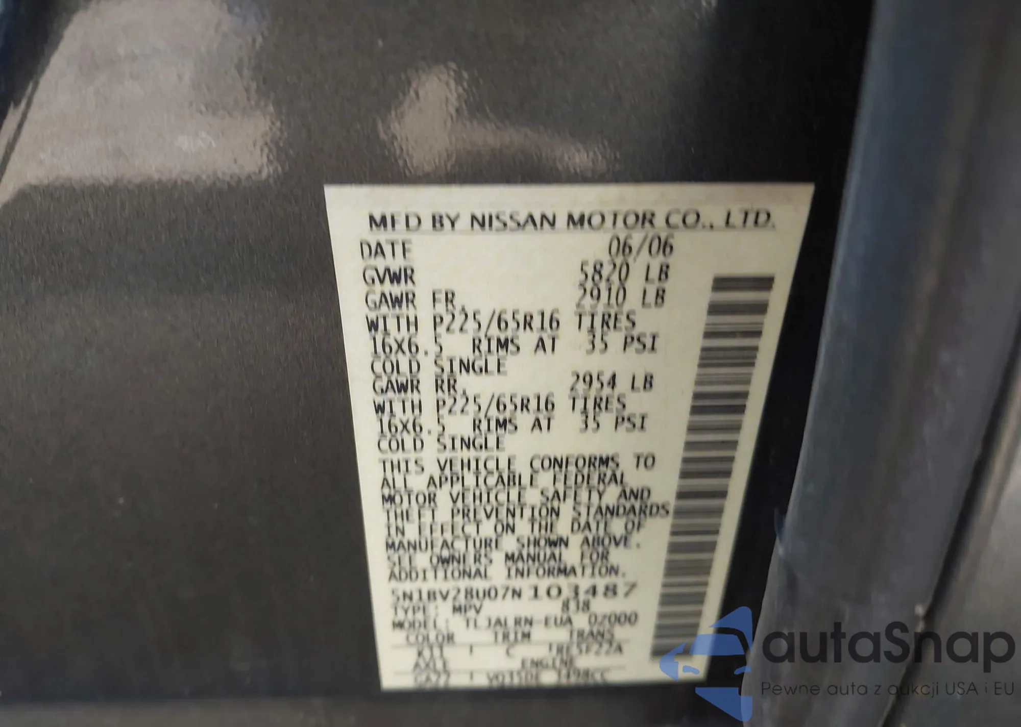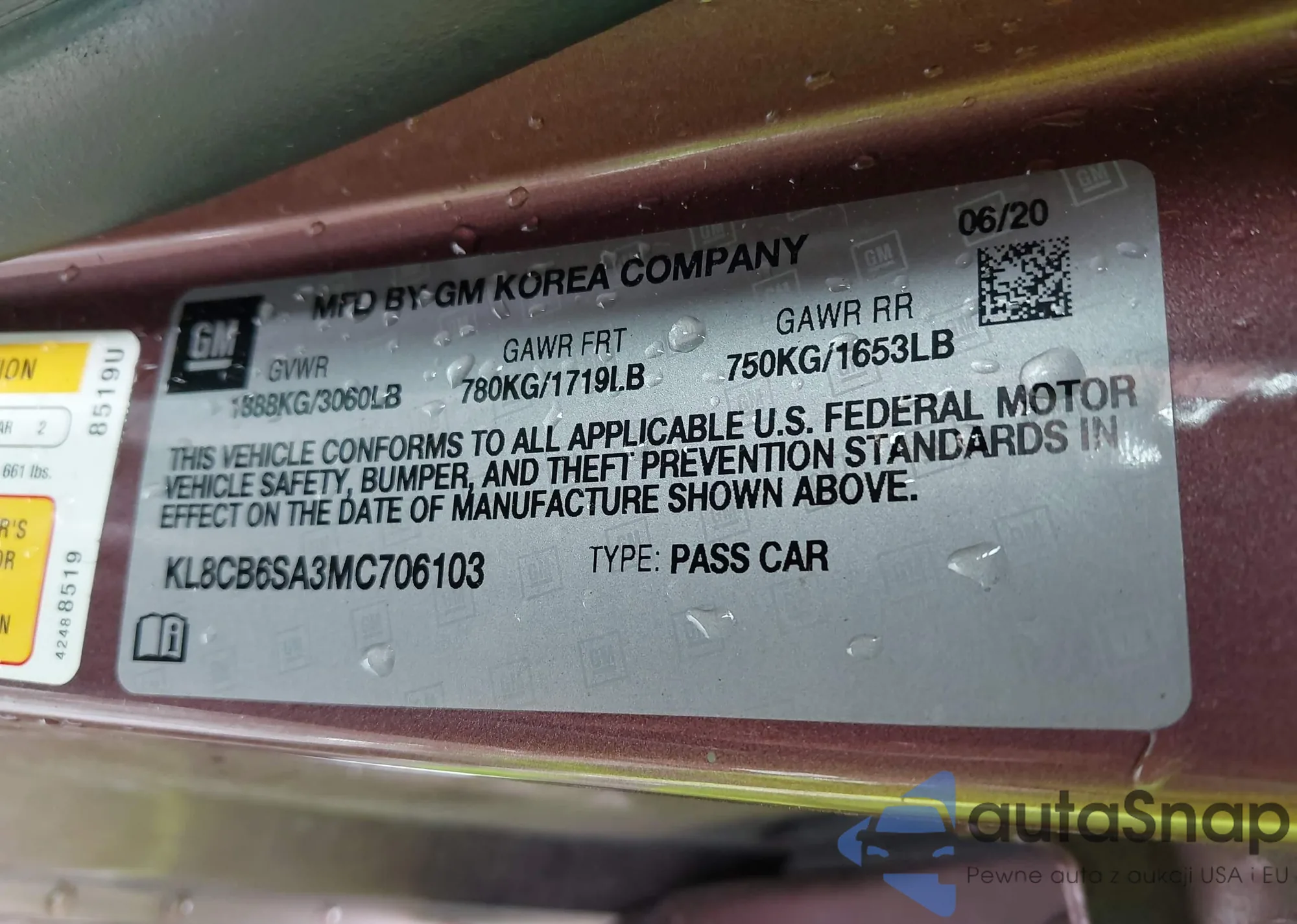 • VIN KL8CB6SA3MC706103