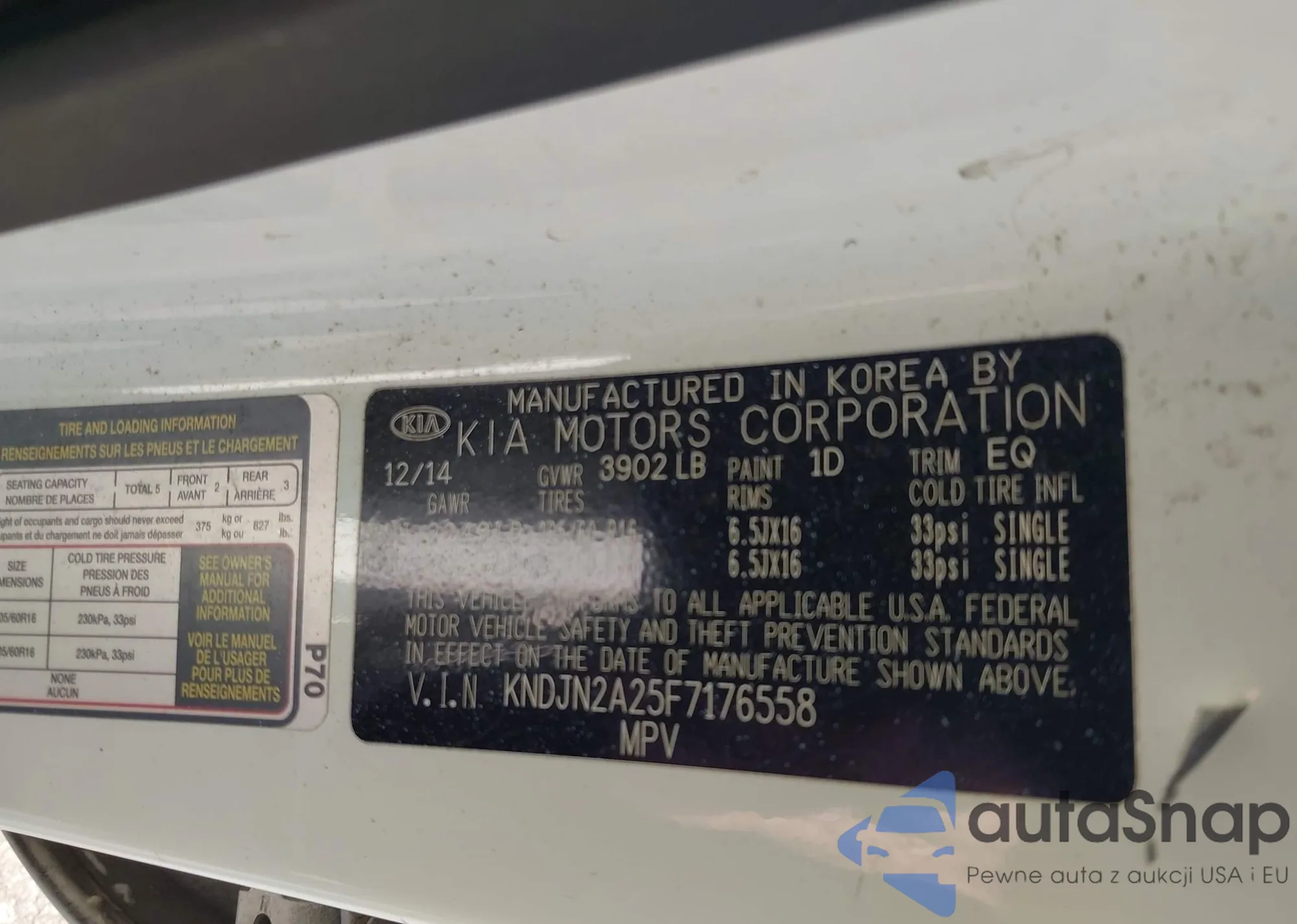 LOT: 42470629 VIN: KNDJN2A25F7176558