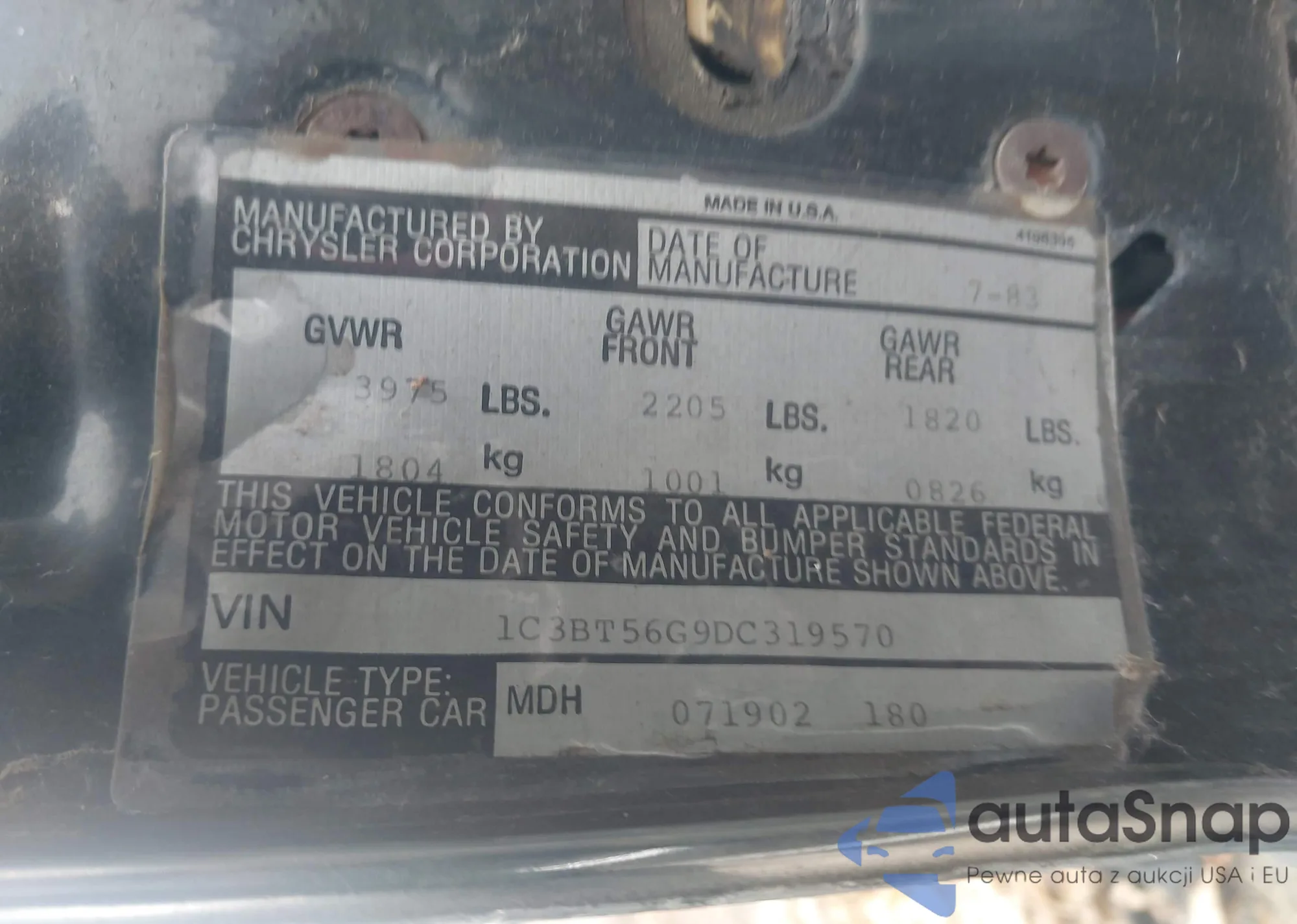 • VIN 1C3BT56G9DC319570