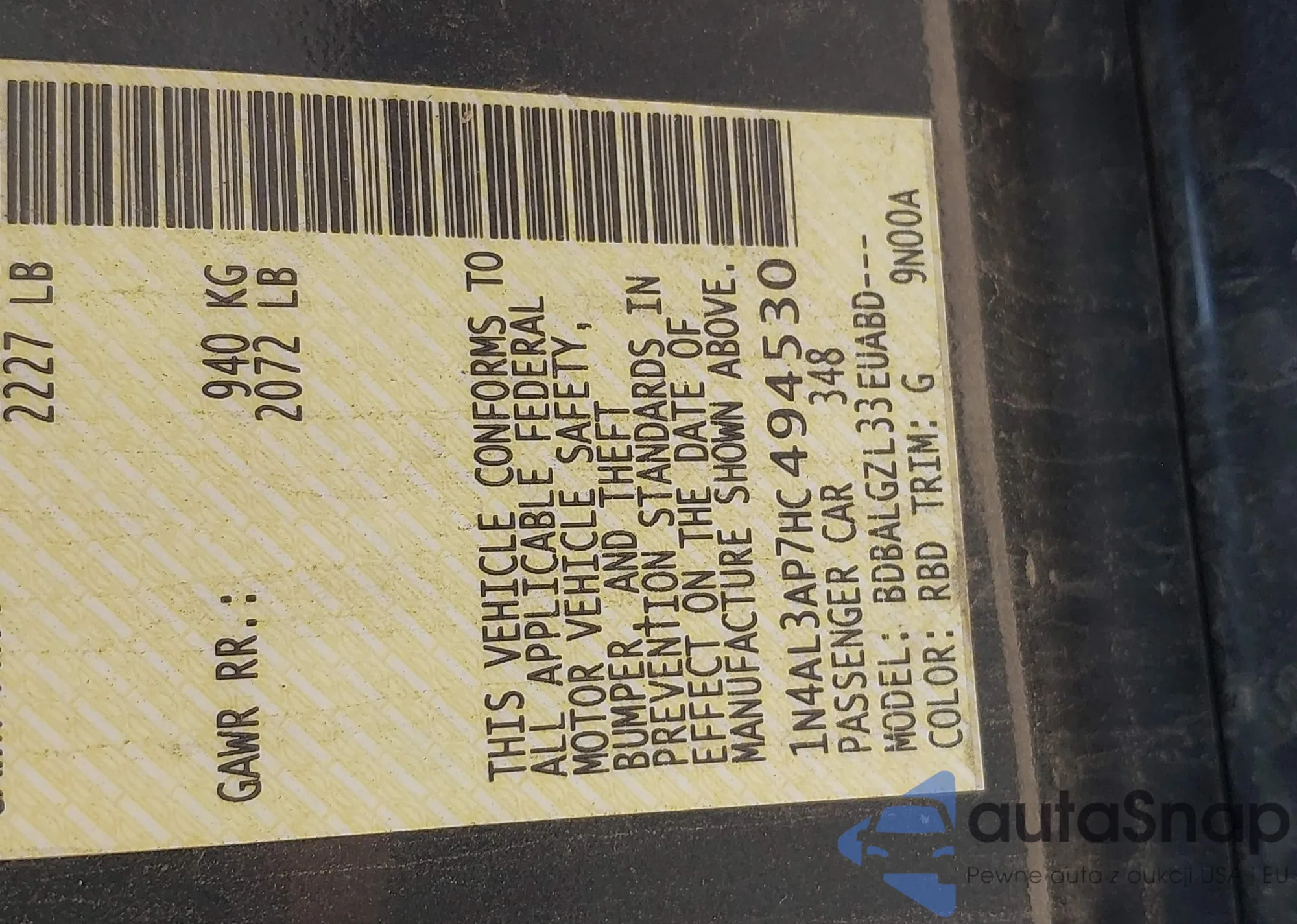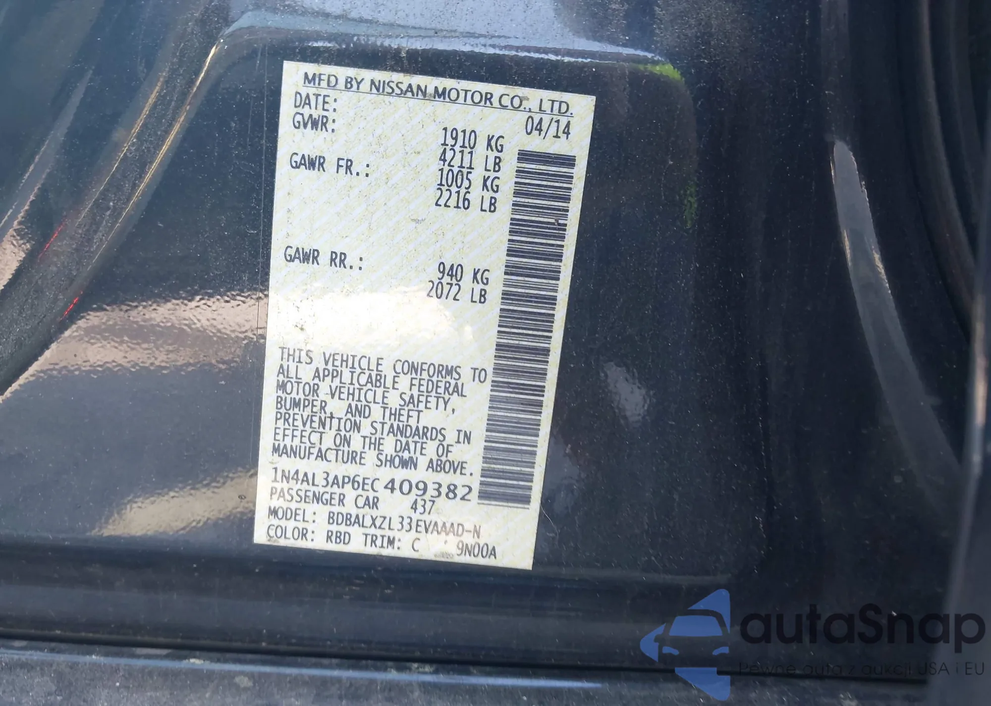 LOT: 42622492 VIN: 1N4AL3AP6EC409382