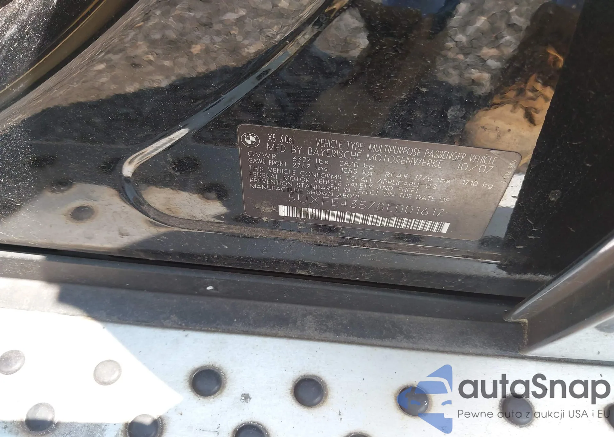 2008 BMW X5 3.0Si from USA, damaged, VIN 5UXFE43578L001617