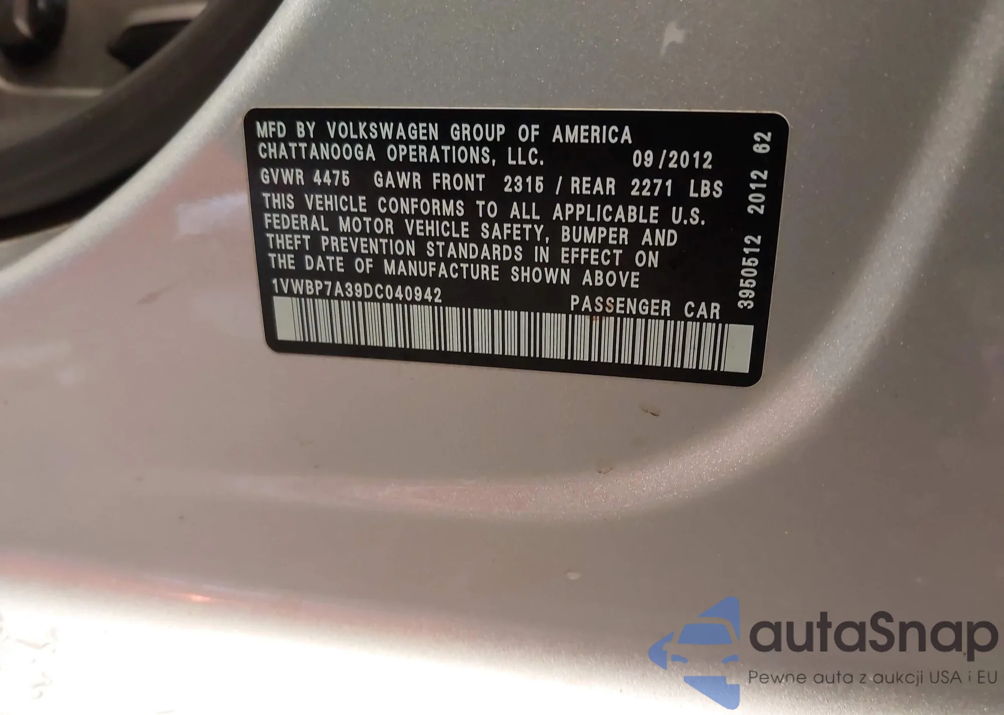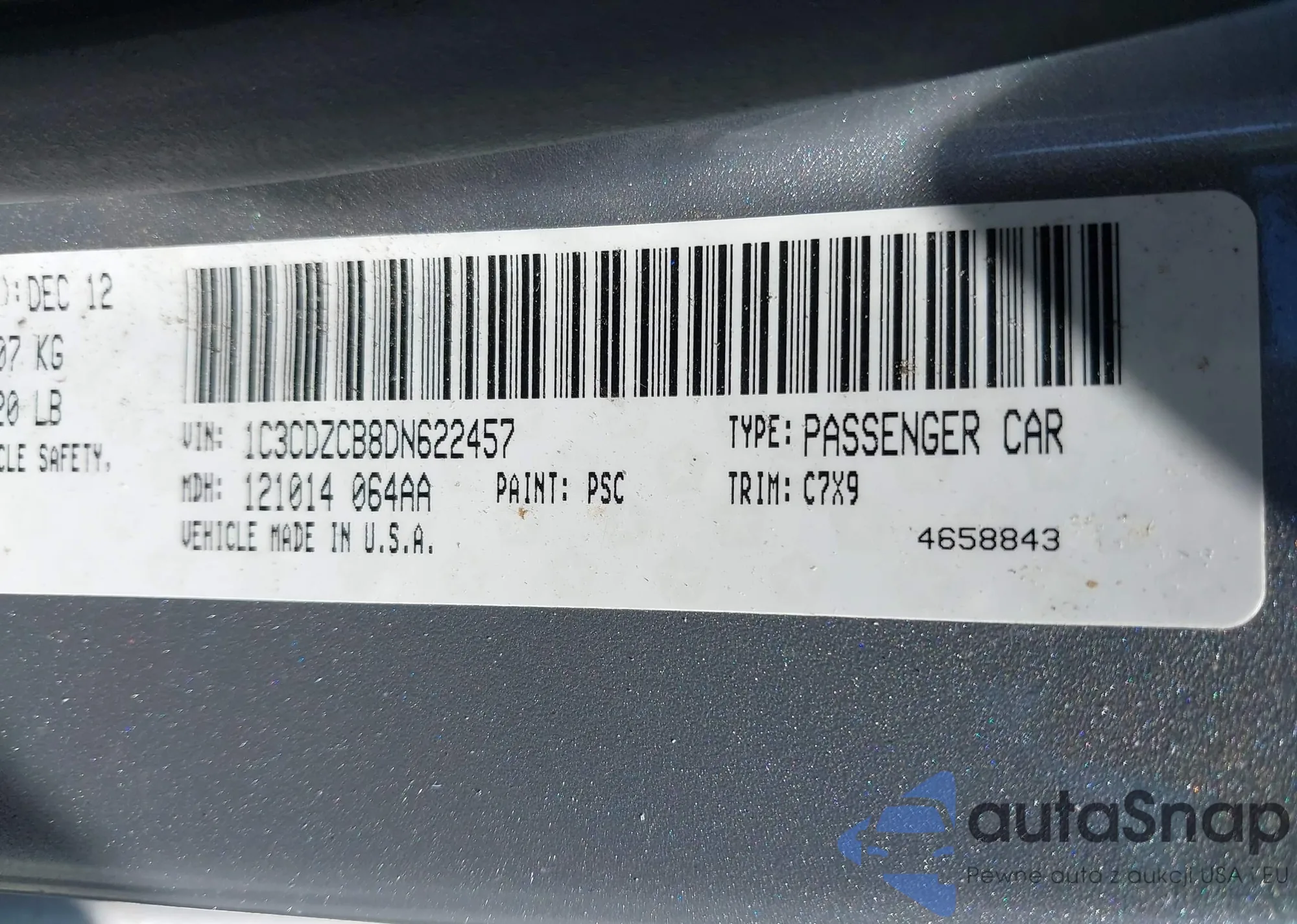 LOT: 39020307 VIN: 1C3CDZCB8DN622457