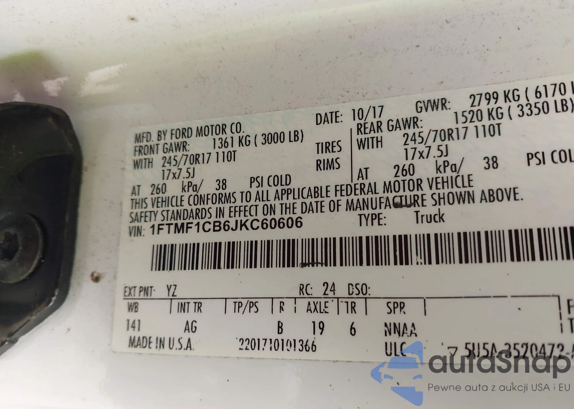 • VIN 1FTMF1CB6JKC60606