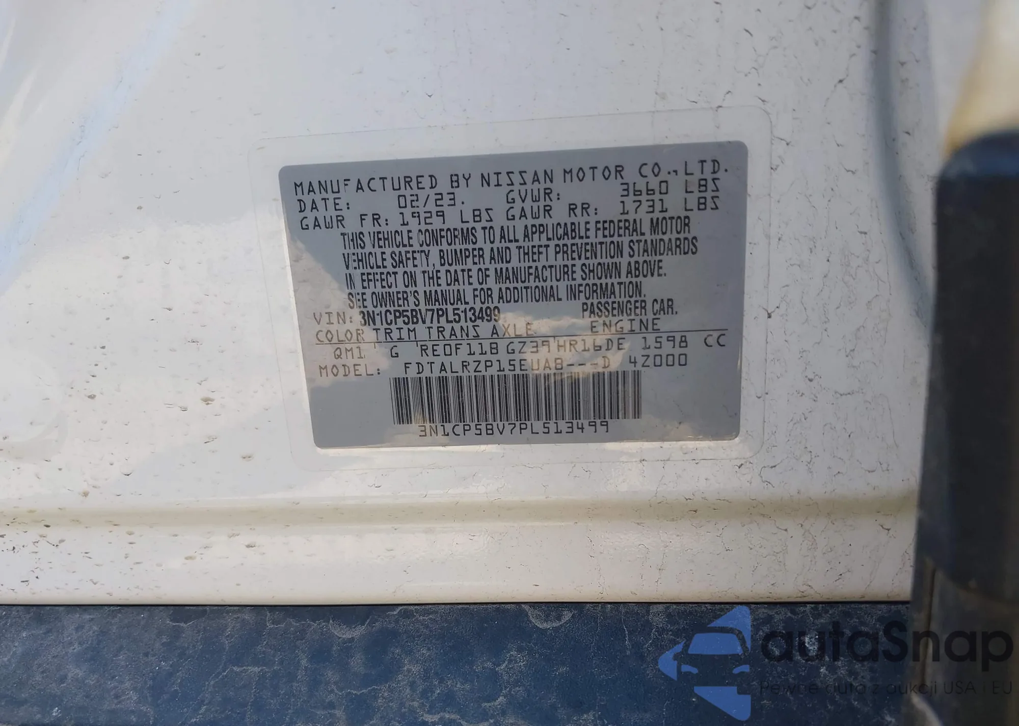 • VIN 3N1CP5BV7PL513499