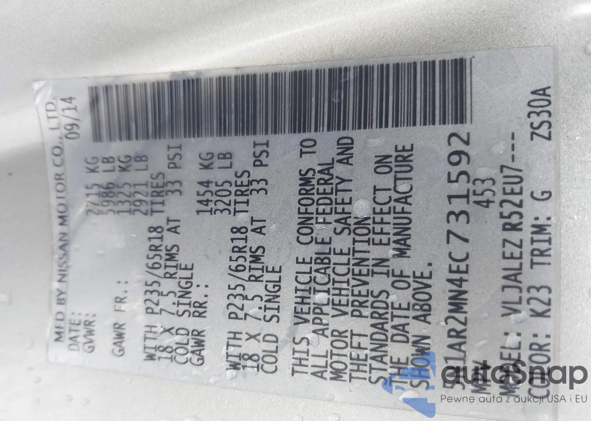 LOT: 42481502 VIN: 5N1AR2MN4EC731592