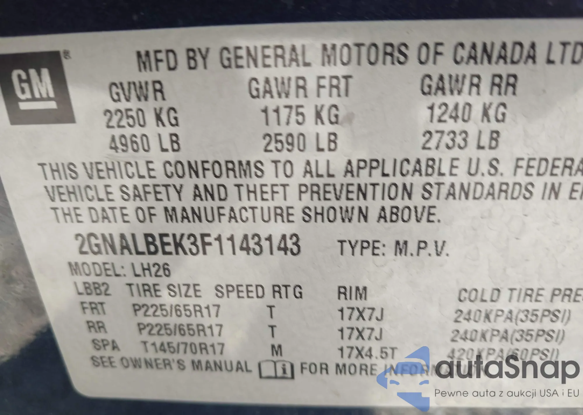 • VIN 5TDGZRBH4MS523942