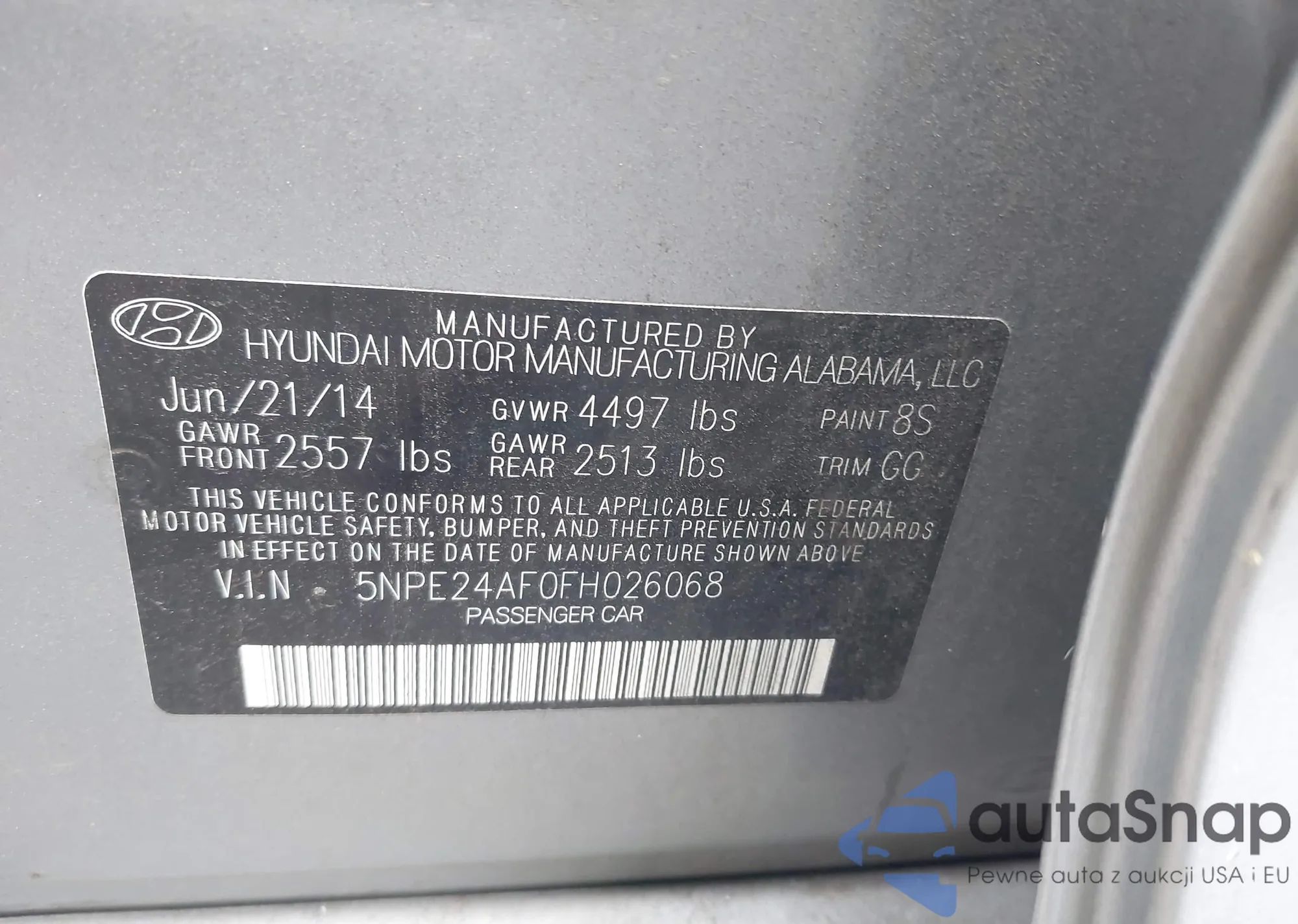 • VIN 5NPE24AF0FH026068