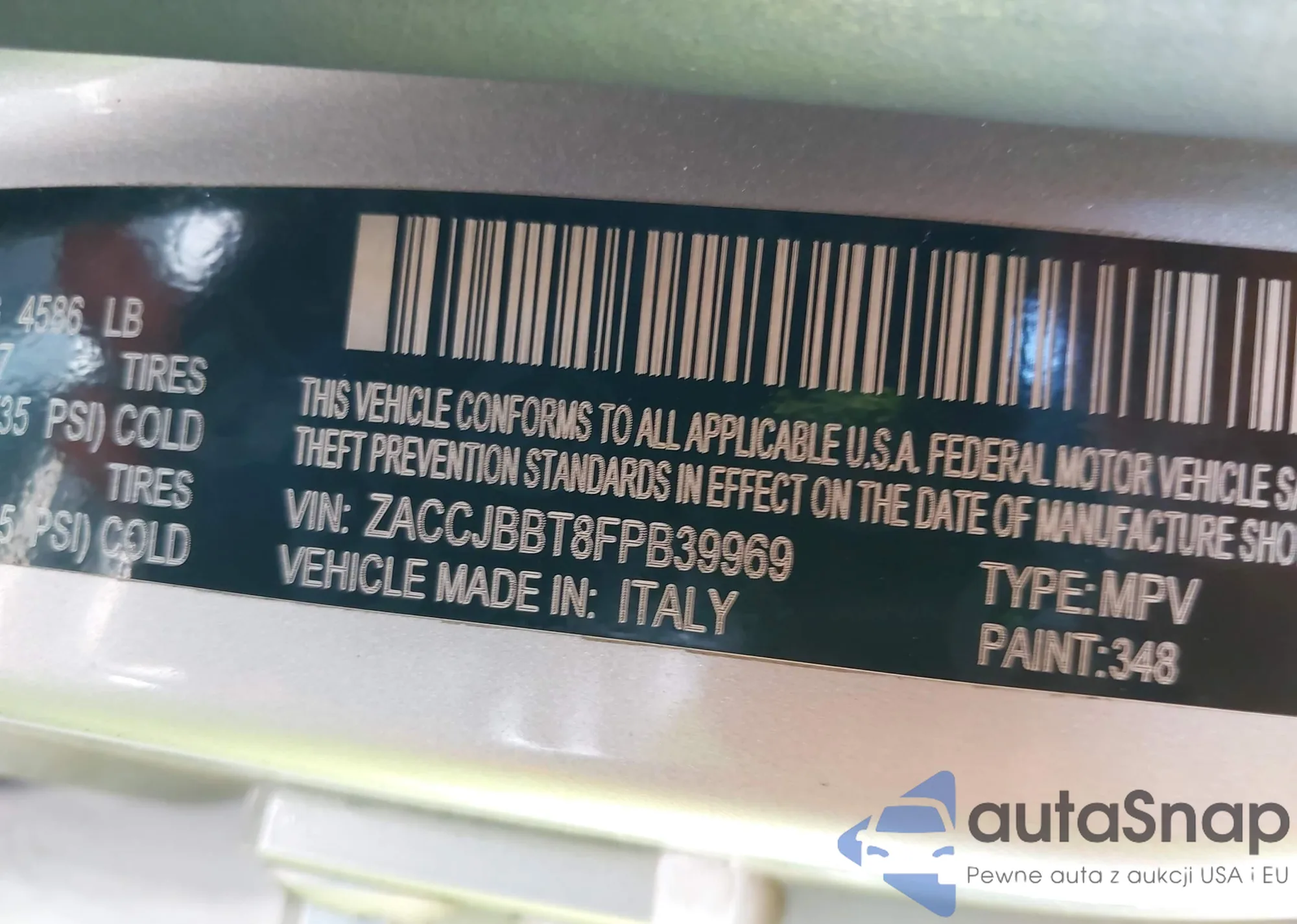 LOT: 42556728 VIN: ZACCJBBT8FPB39969