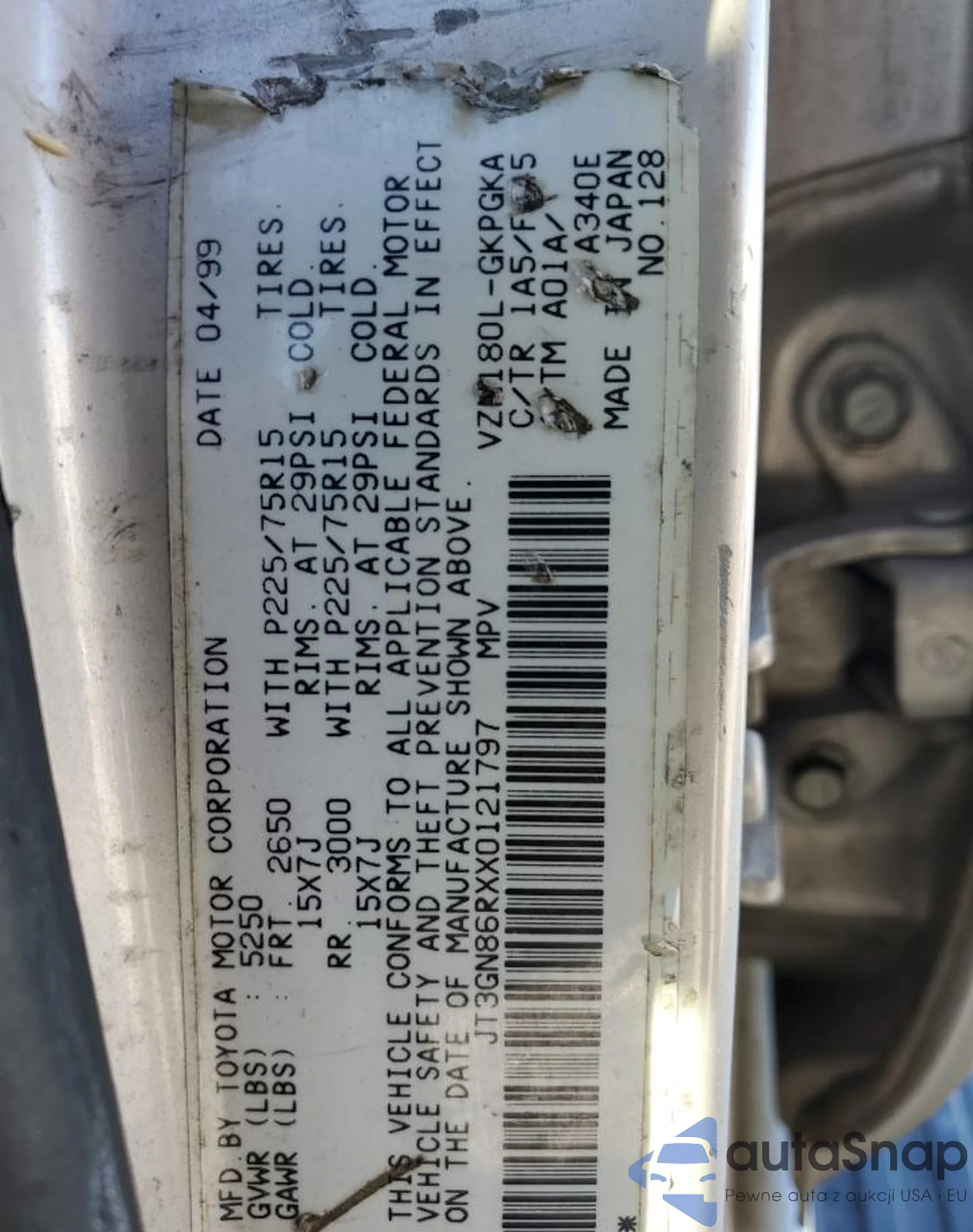 LOT: 89310455 VIN: JT3GN86RXX0121797