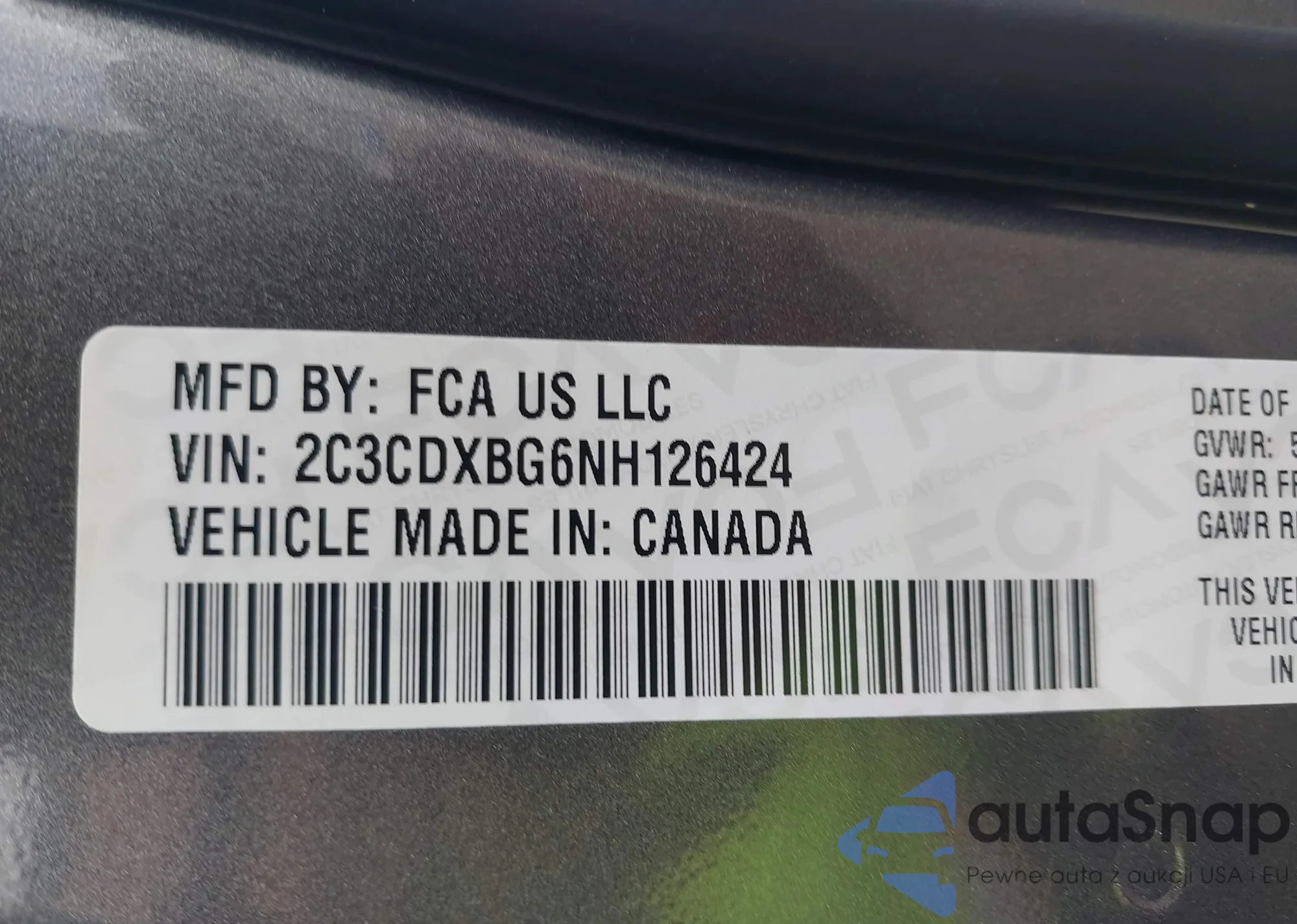 • VIN 2C3CDXBG6NH126424