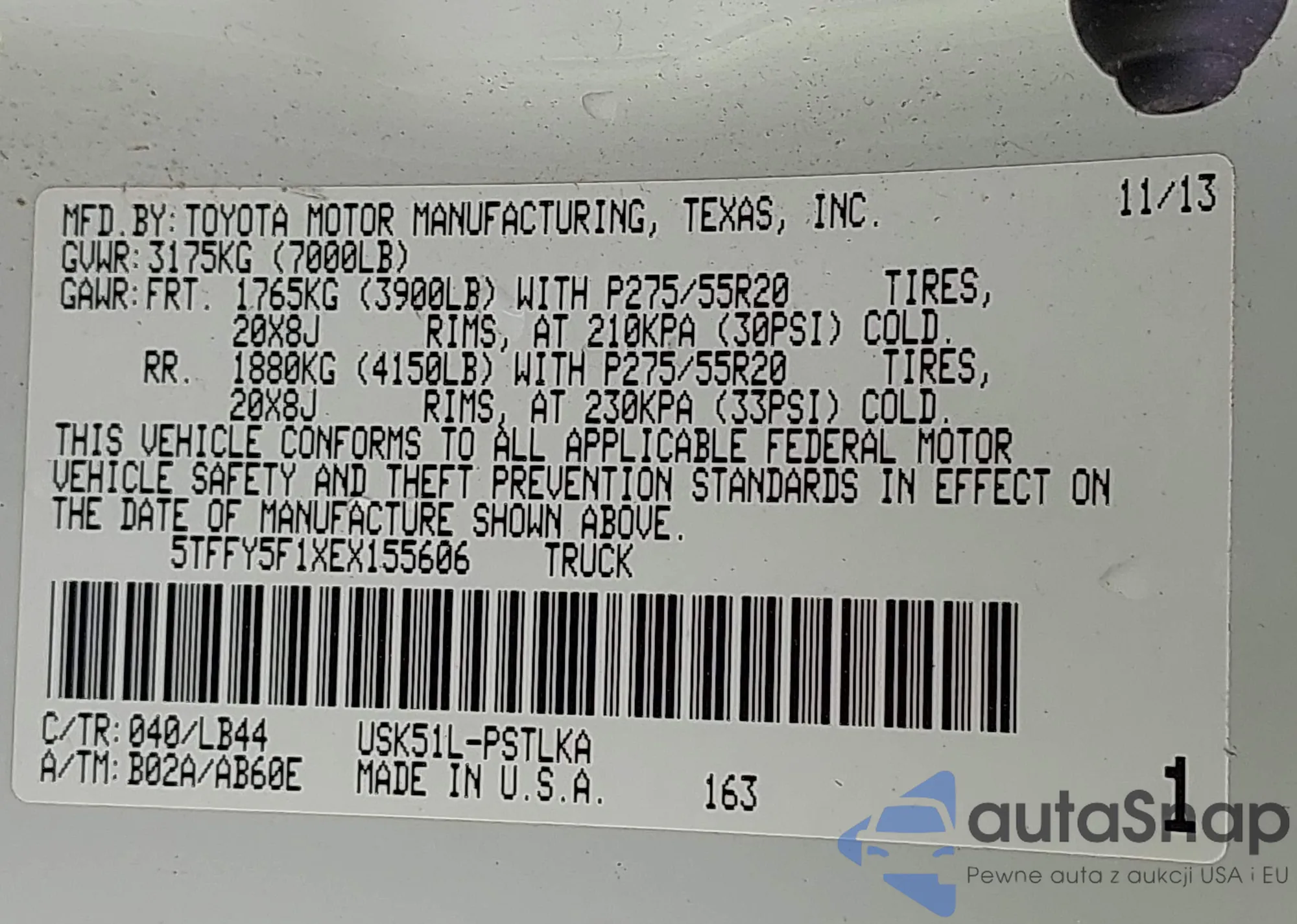 LOT: 42034453 VIN: 58ABZ1B16KU029710