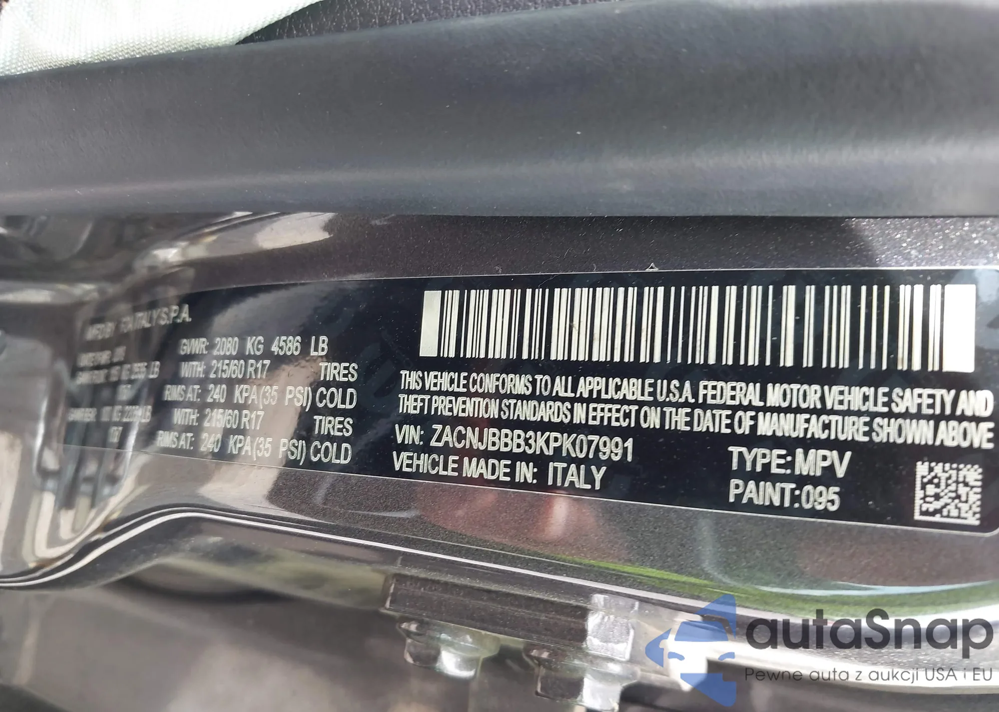 LOT: 42503815 VIN: ZACNJBBB3KPK07991