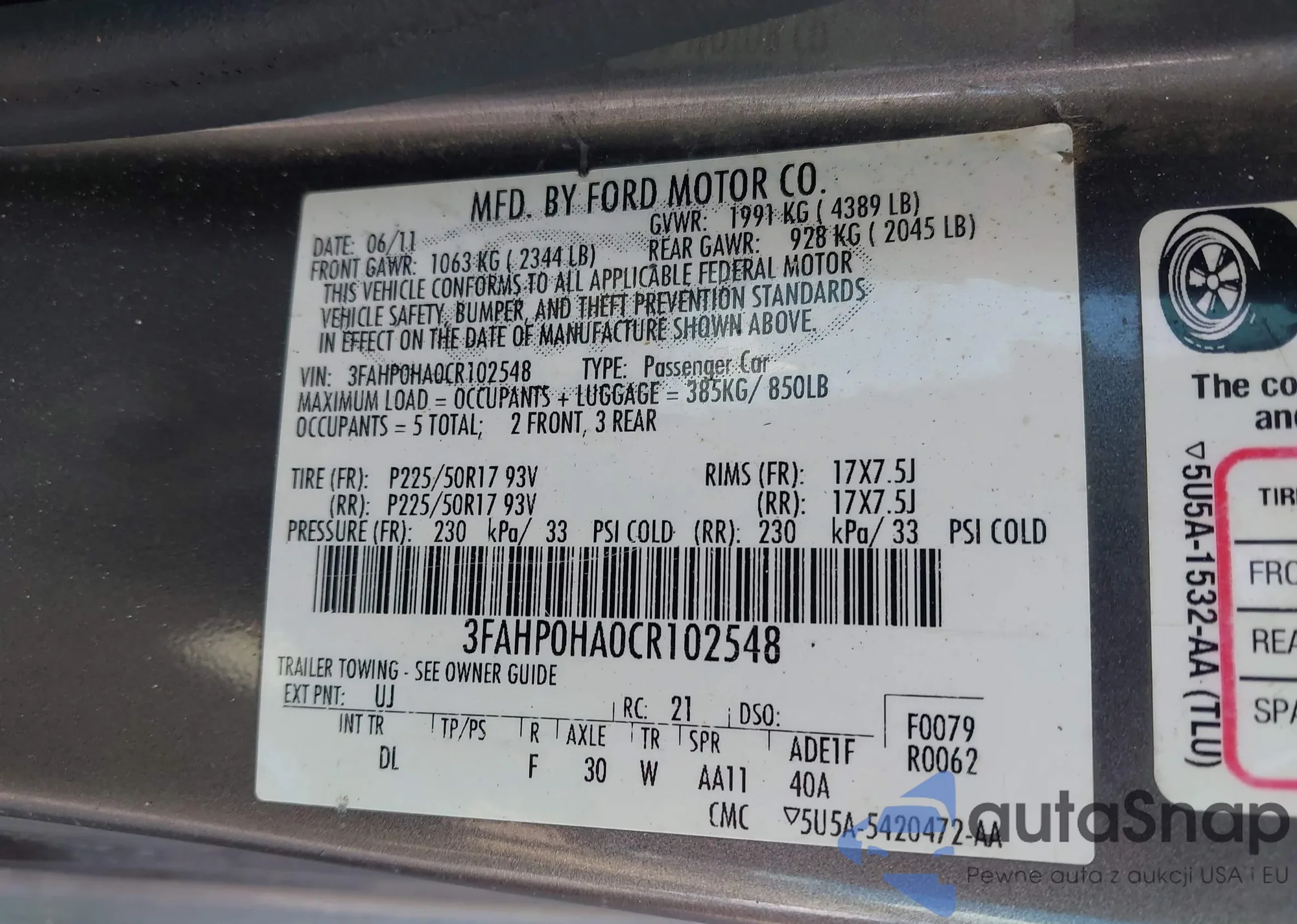 • VIN 3FAHP0HA0CR102548