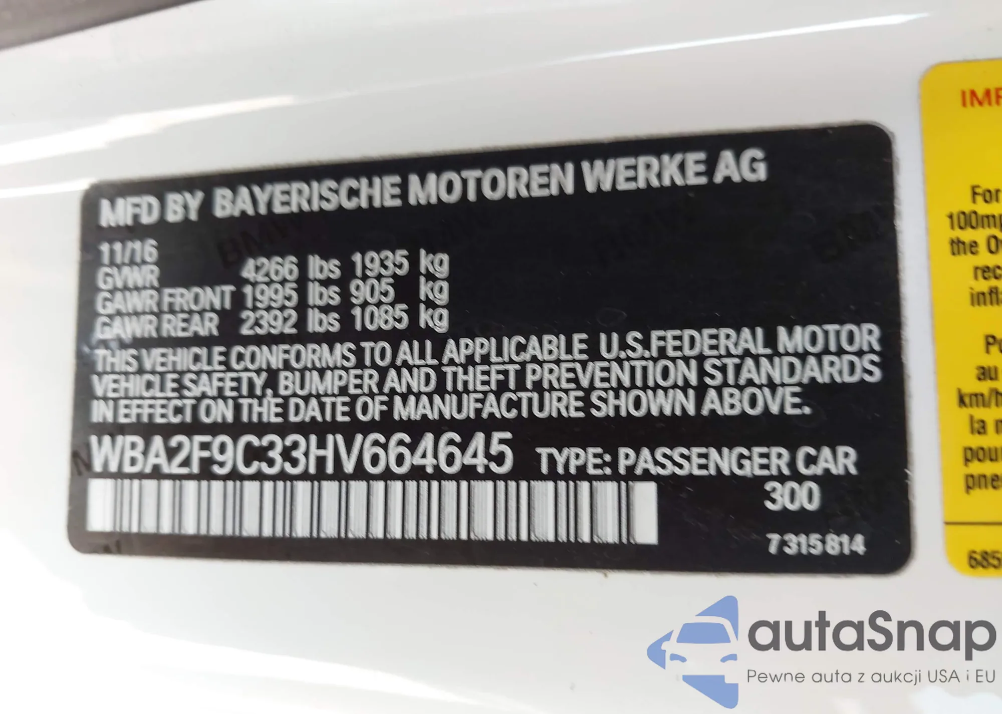 • VIN WBA2F9C33HV664645