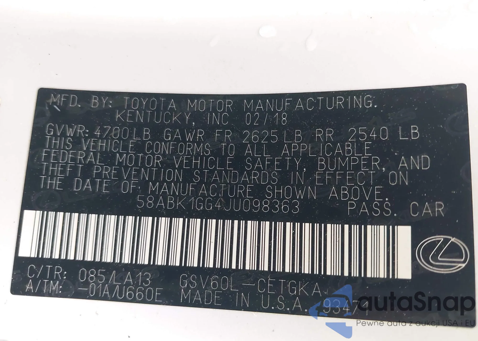 • VIN 58ABK1GG4JU098363
