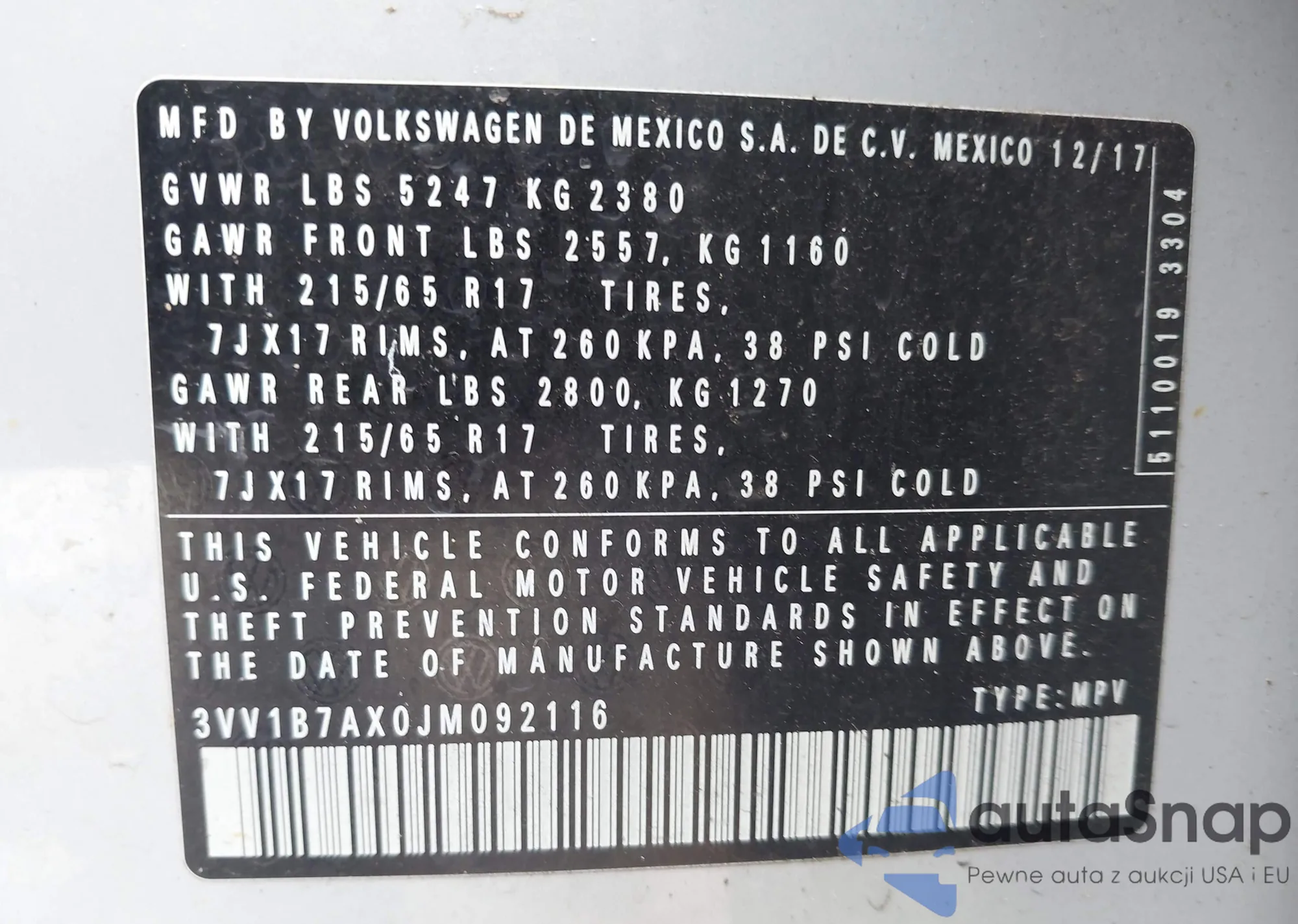 • VIN 3VV1B7AX0JM092116