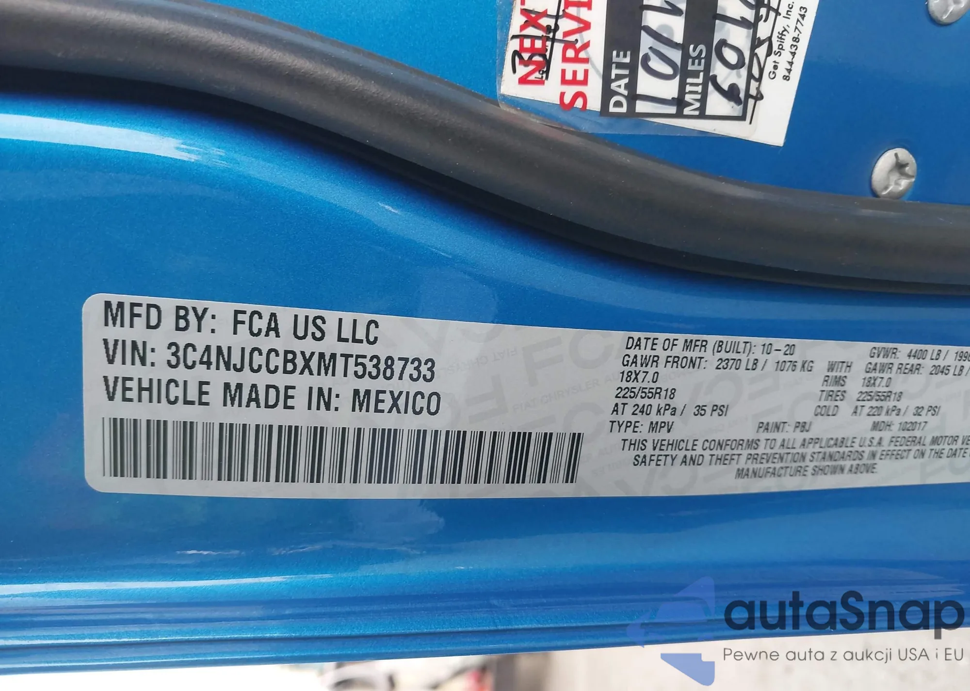 • VIN 3C4NJCCBXMT538733