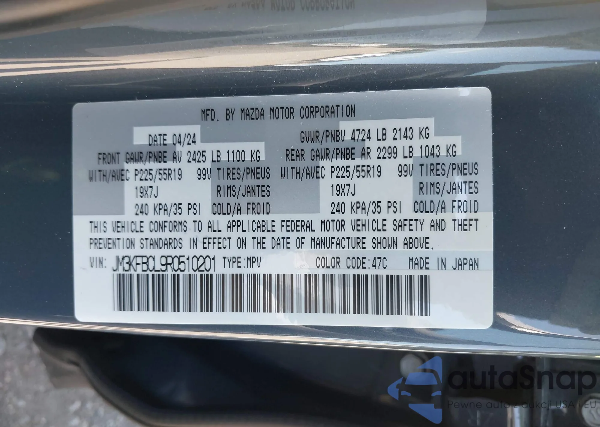 LOT: 42463615 VIN: JM3KFBCL9R0510201