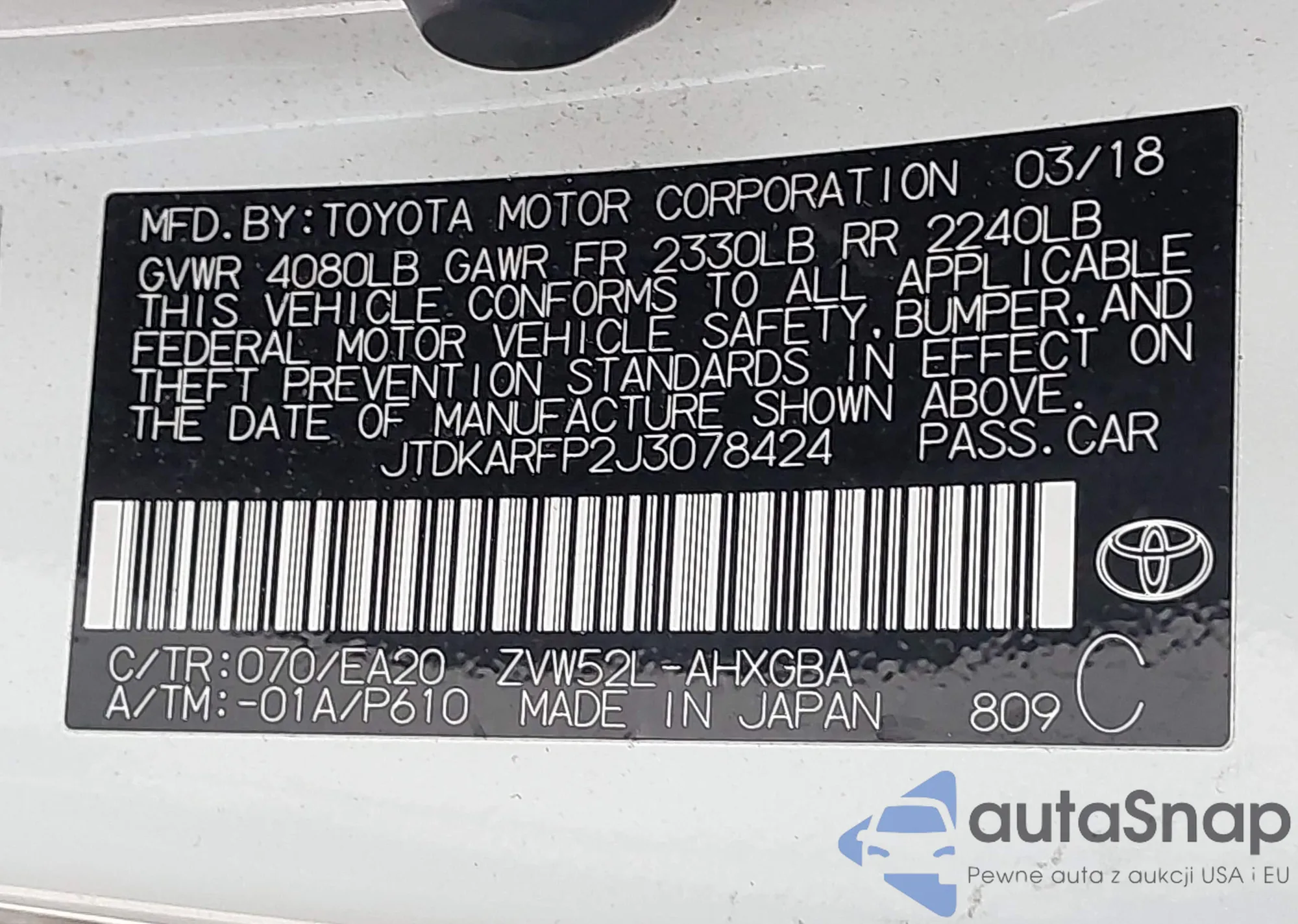 LOT: 42388339 VIN: 3VV1B7AX0JM092116