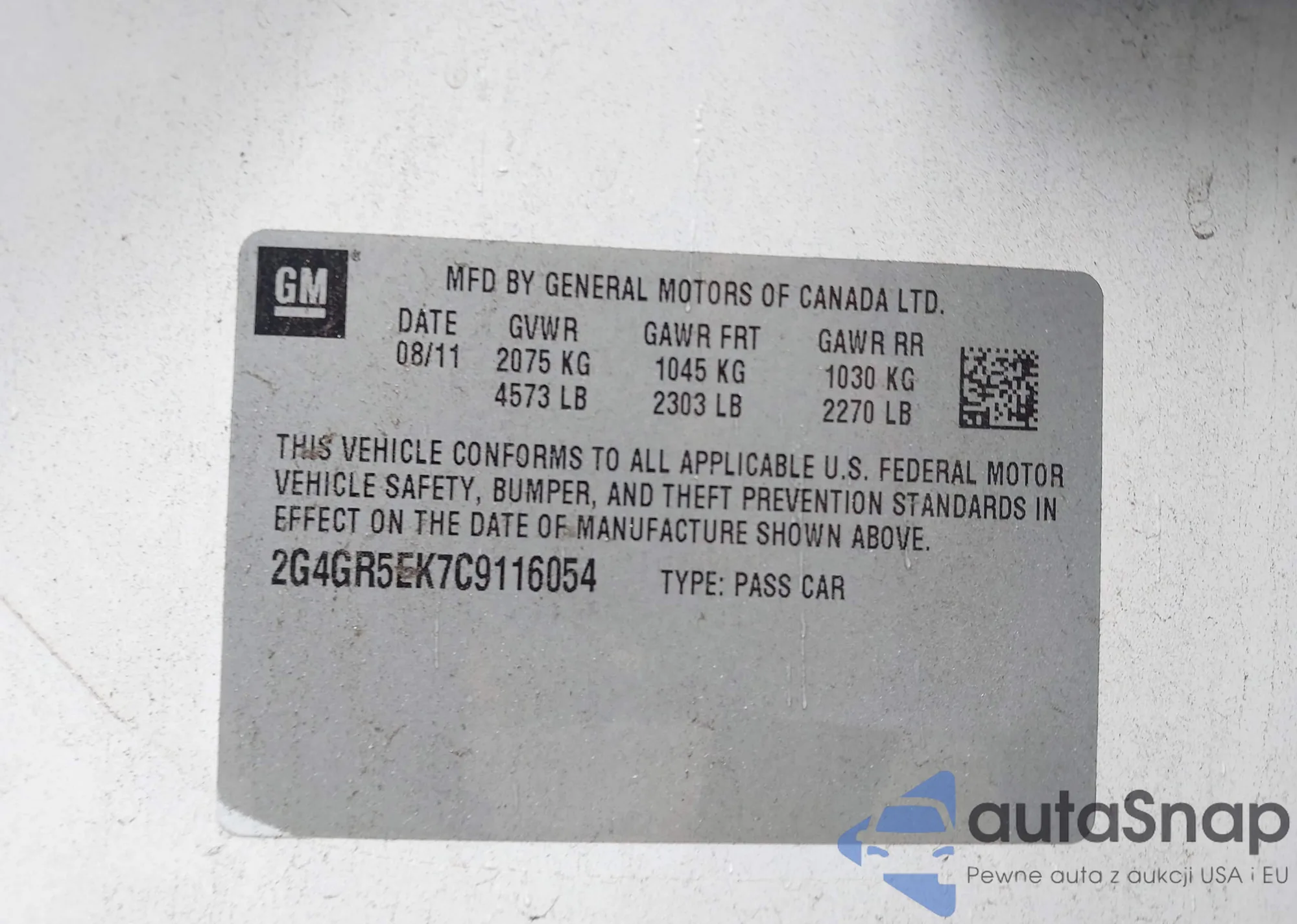 • VIN 2G4GR5EK7C9116054