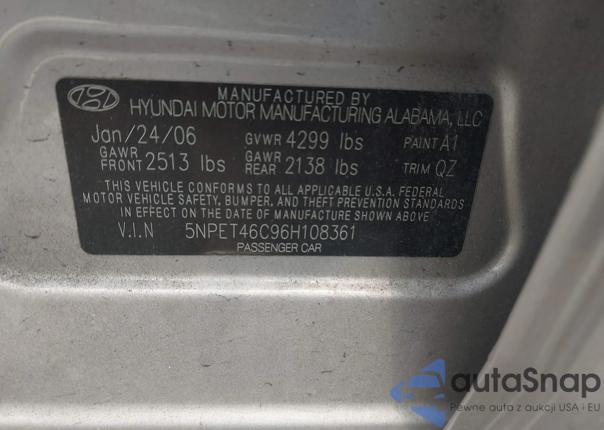 LOT: 42396145 VIN: 5NPET46C96H108361