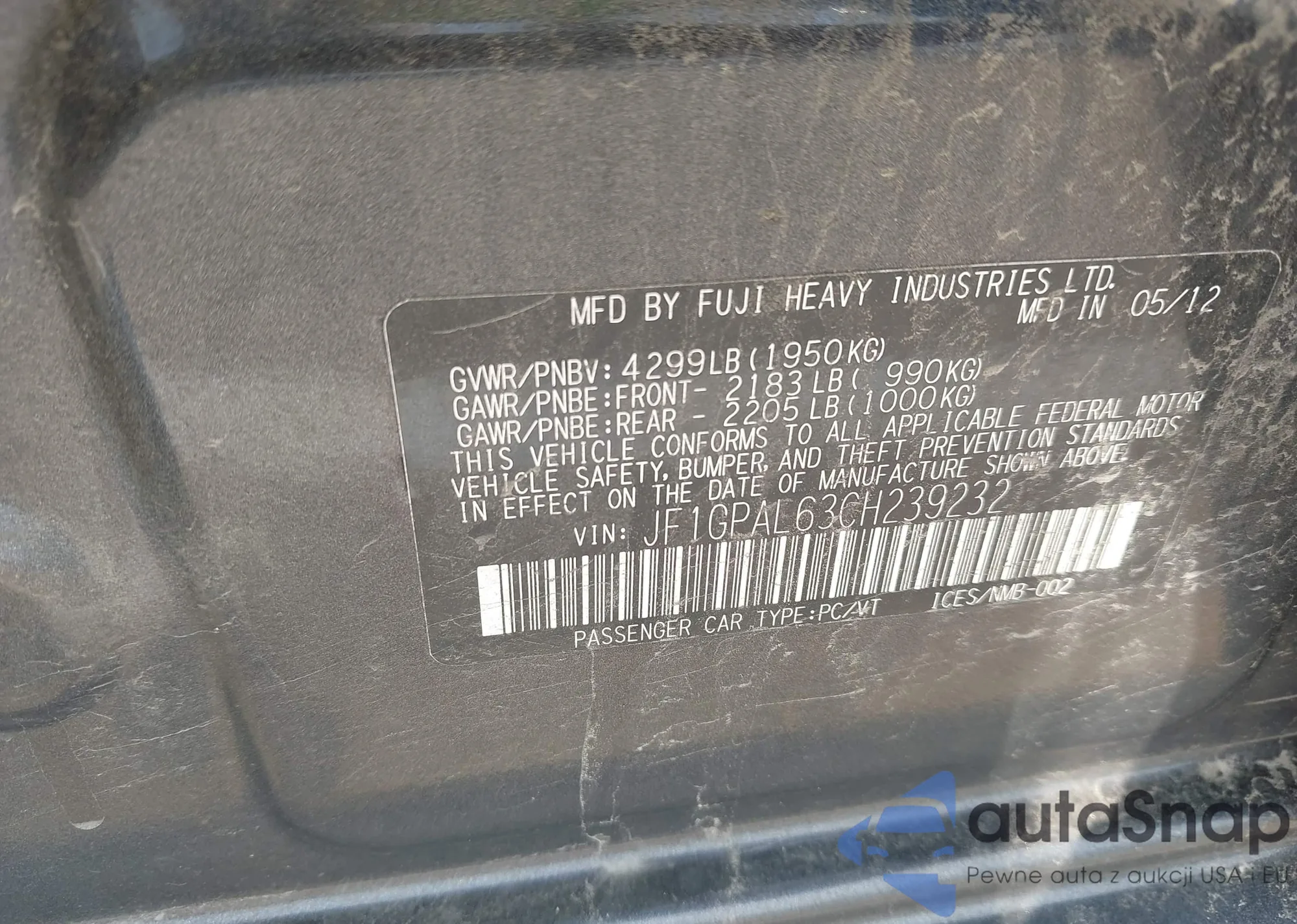 • VIN JF1GPAL63CH239232
