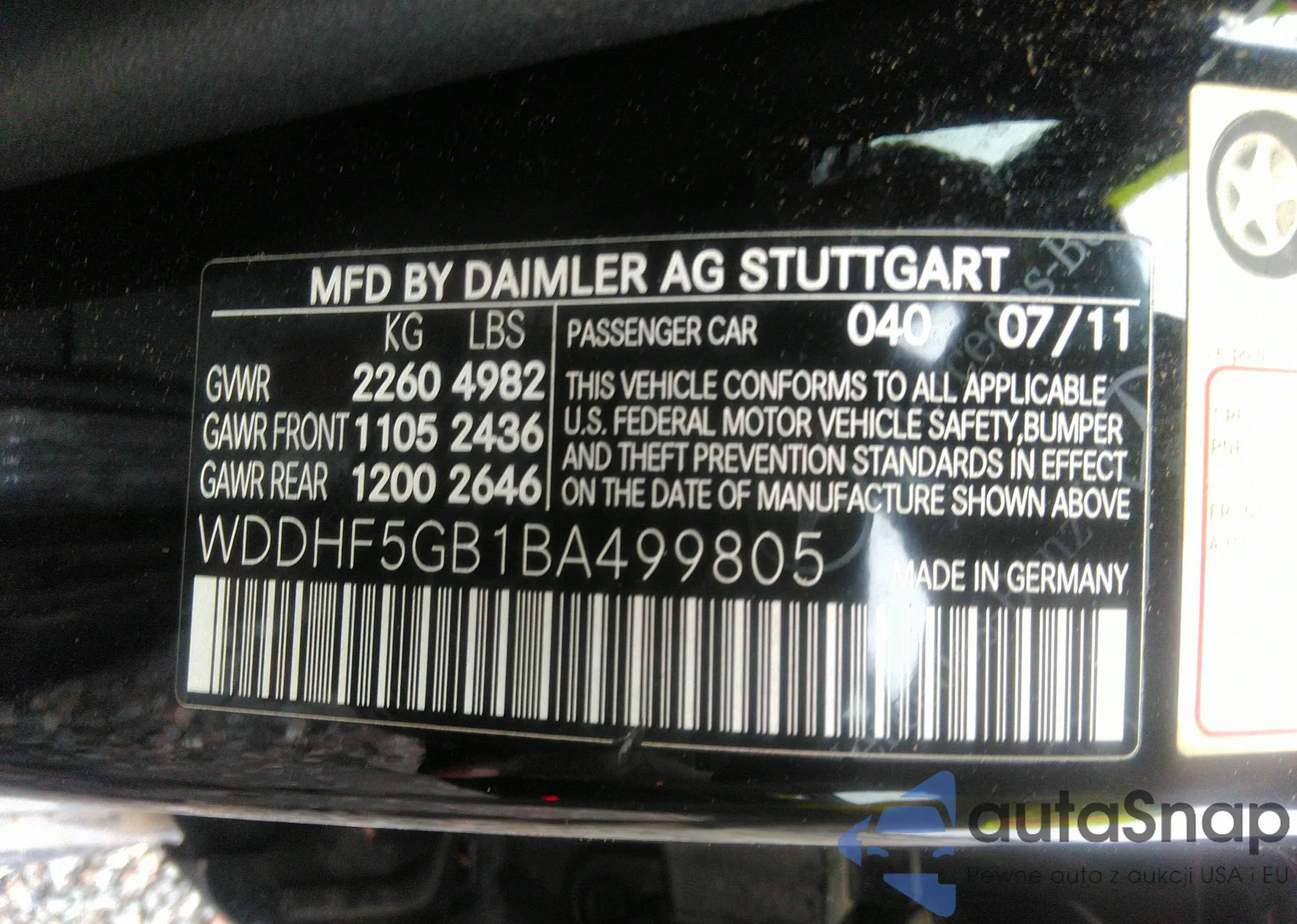 • VIN WDDHF5GB1BA499805