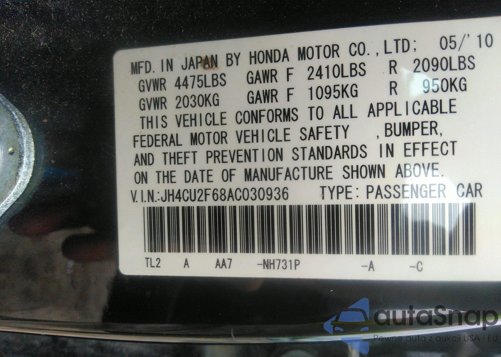 • VIN JH4CU2F68AC030936