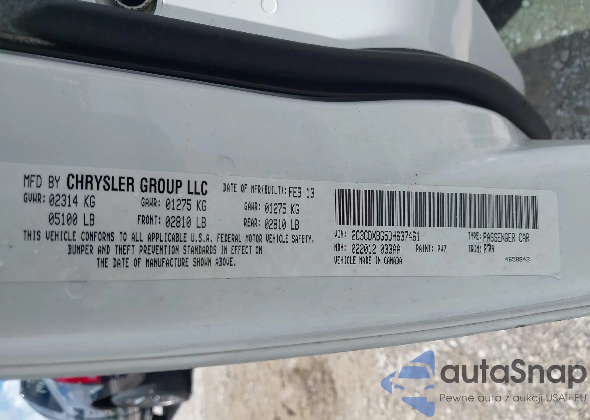 • VIN 2C3CDXBG5DH637461