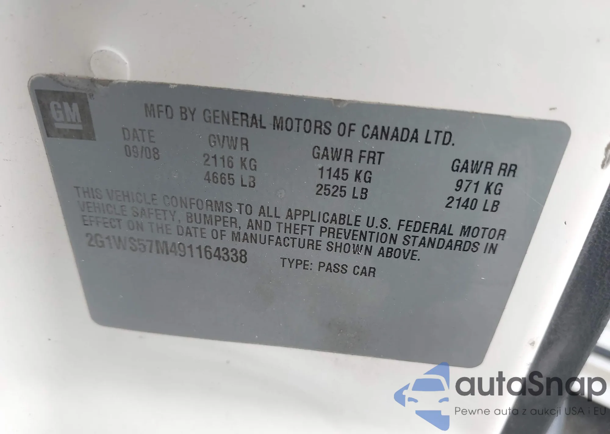 • VIN 2G1WS57M491164338