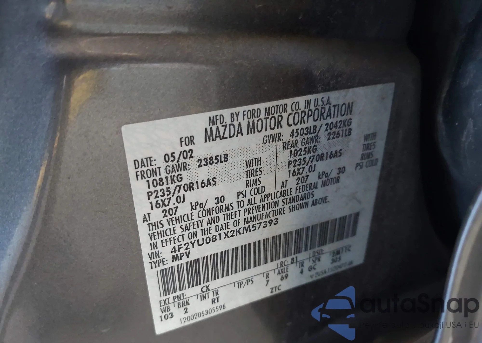 • VIN 4F2YU081X2KM57393