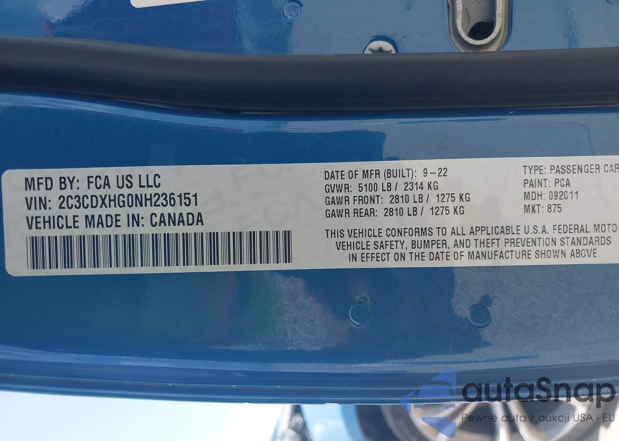 • VIN 2C3CDXHG0NH236151