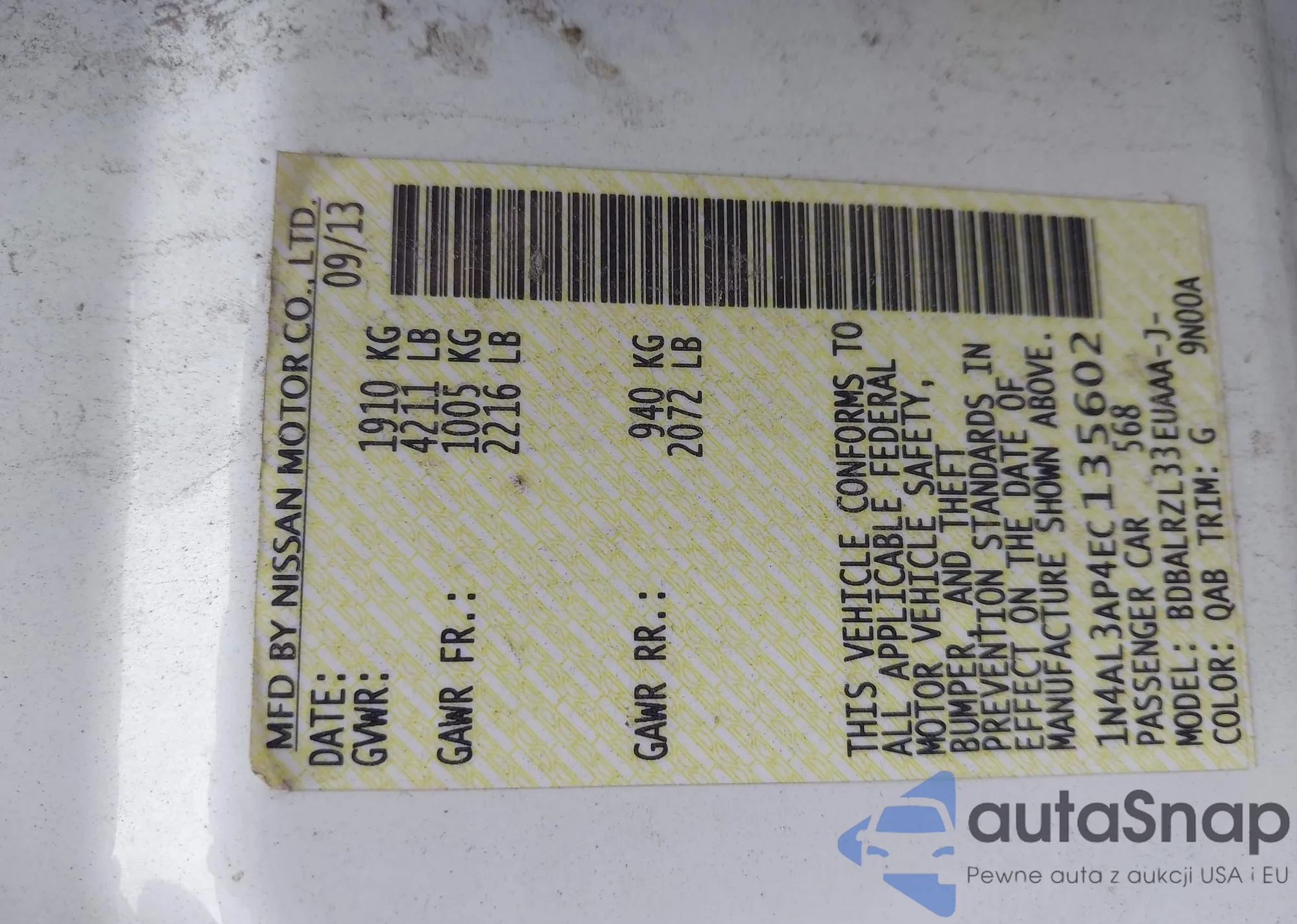 LOT: 42687140 VIN: 1N4AL3AP4EC135602