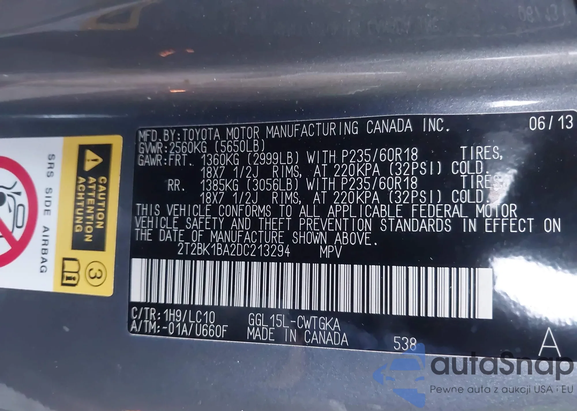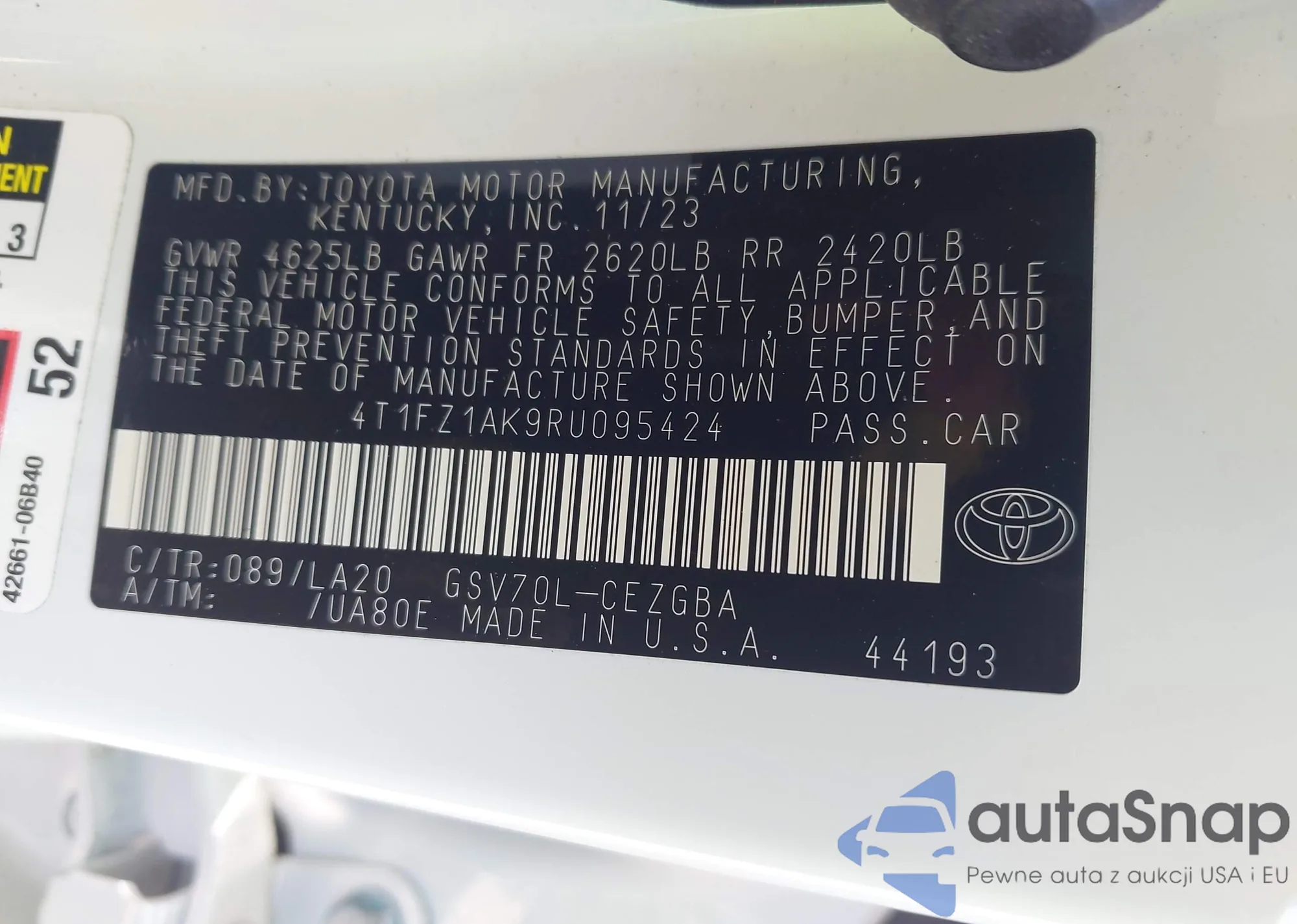 • VIN 4T1FZ1AK9RU095424