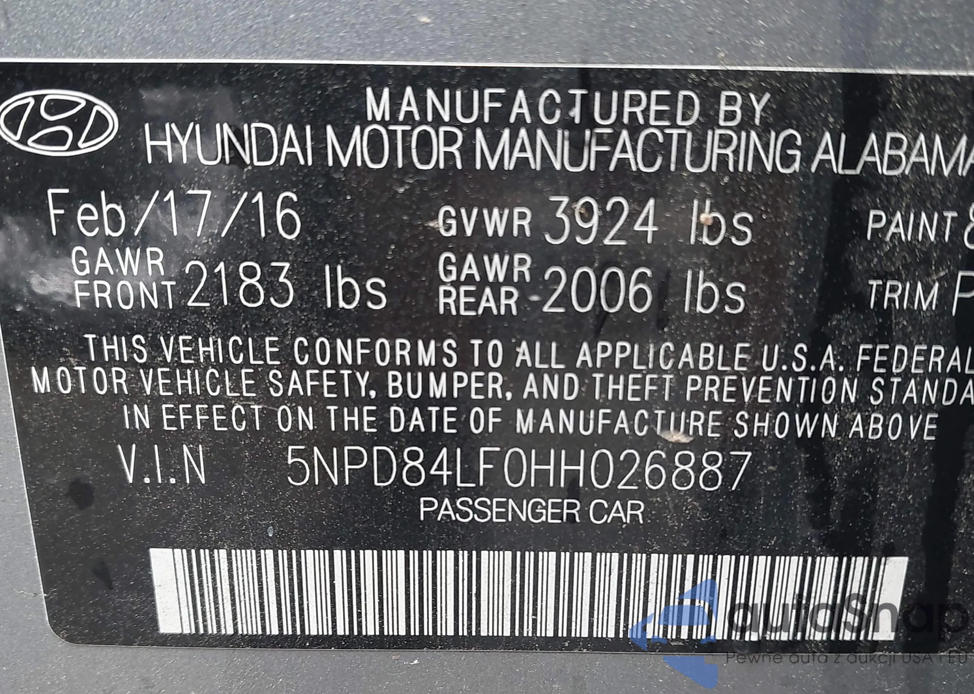 • VIN 5NPD84LF0HH026887